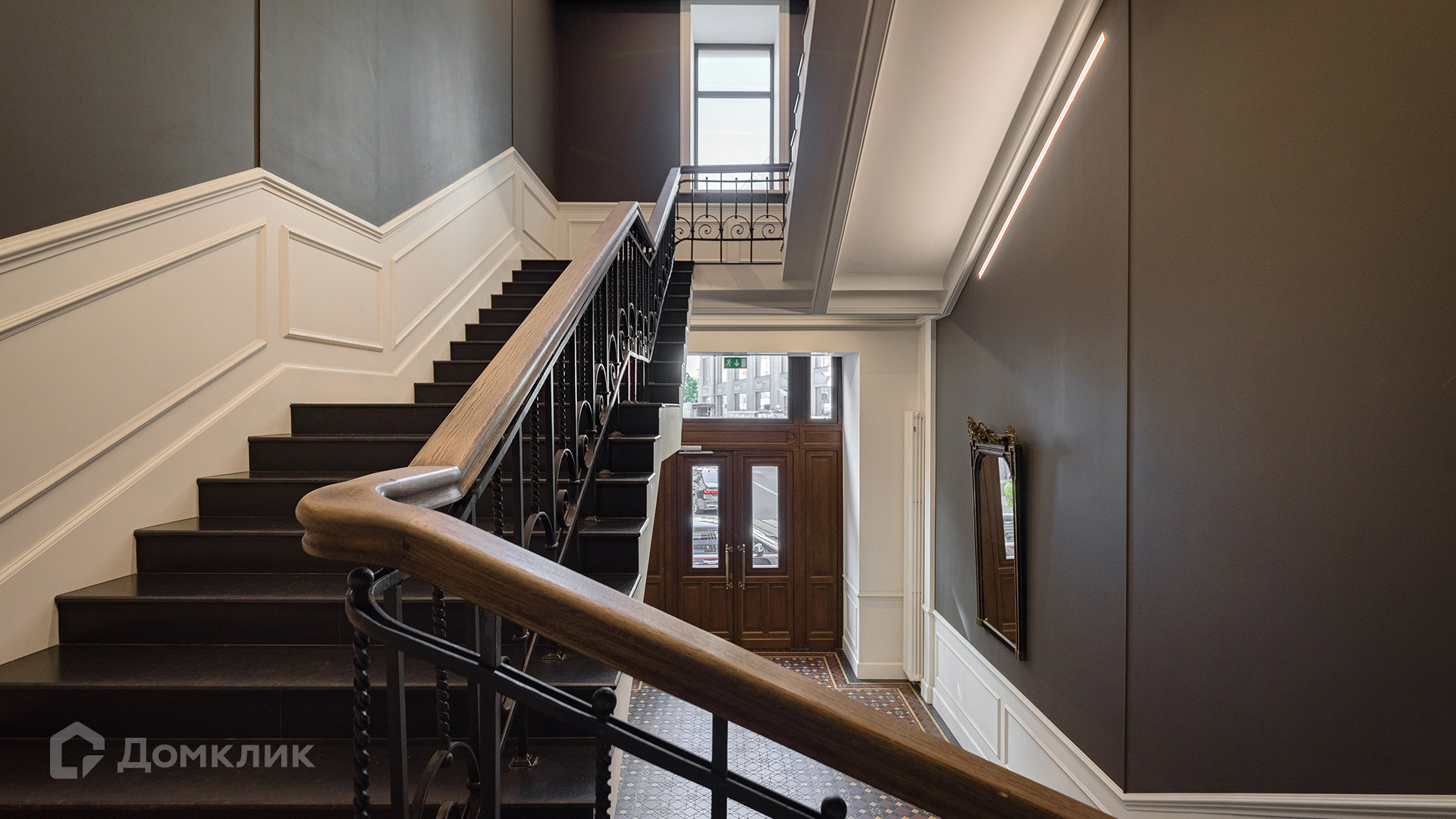 Лобби дома оформили мрамором, ценными породами дерева, гипсовой лепниной и метлахской плиткой. Гостей и резидентов встречает консьерж, который готов помочь с бытовыми вопросами.