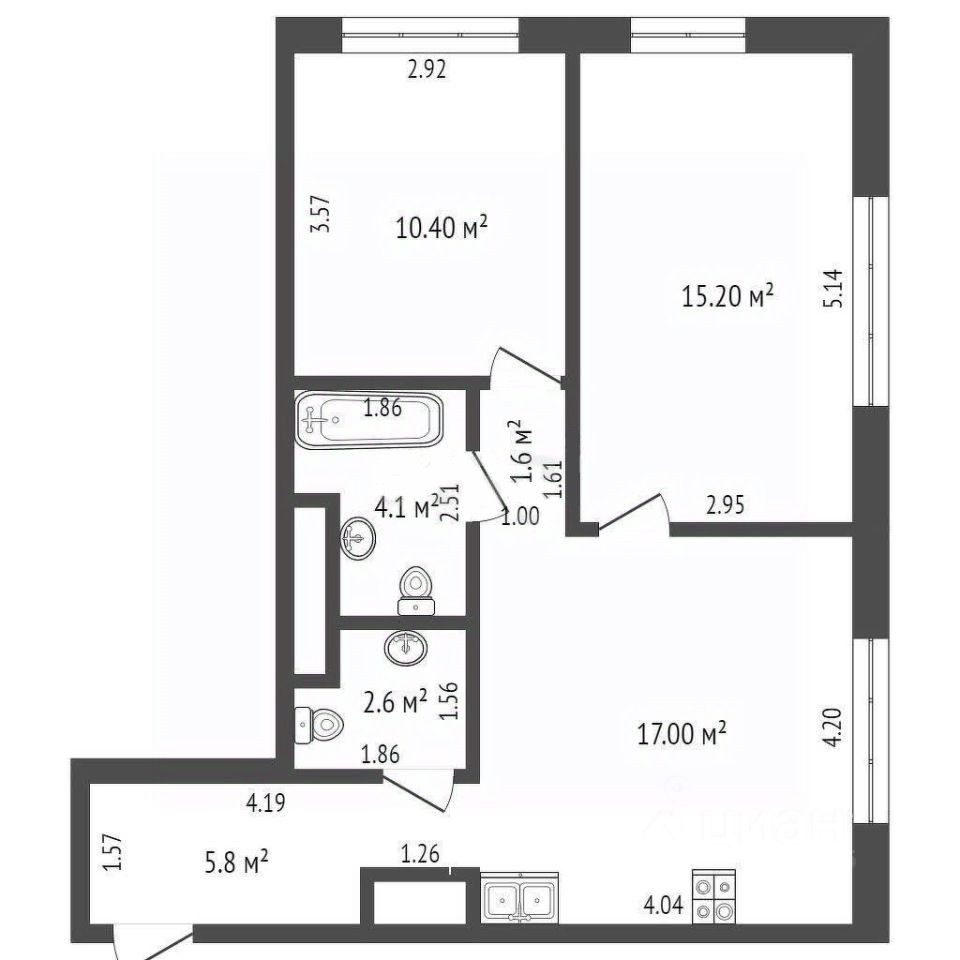Общая площадь 57 м2