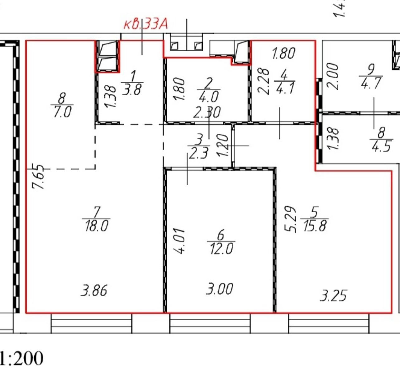 Жилая площадь 45.8 м2