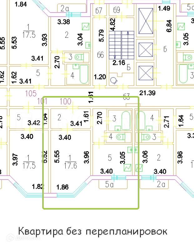 Общая площадь 41.4 м2