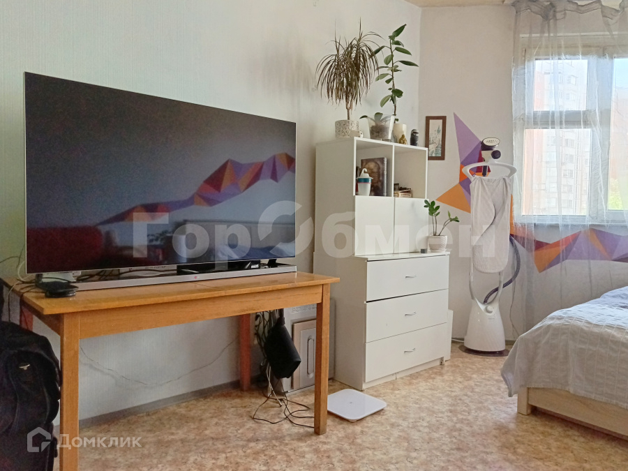 См. фото и видео! Панельный дом серии КОПЭ, за счет полуэркера - в комнате большие окна и очень светло. Отделка от застройщика двадцатилетней давности - сдавать и жить можно, но ремонт просится.