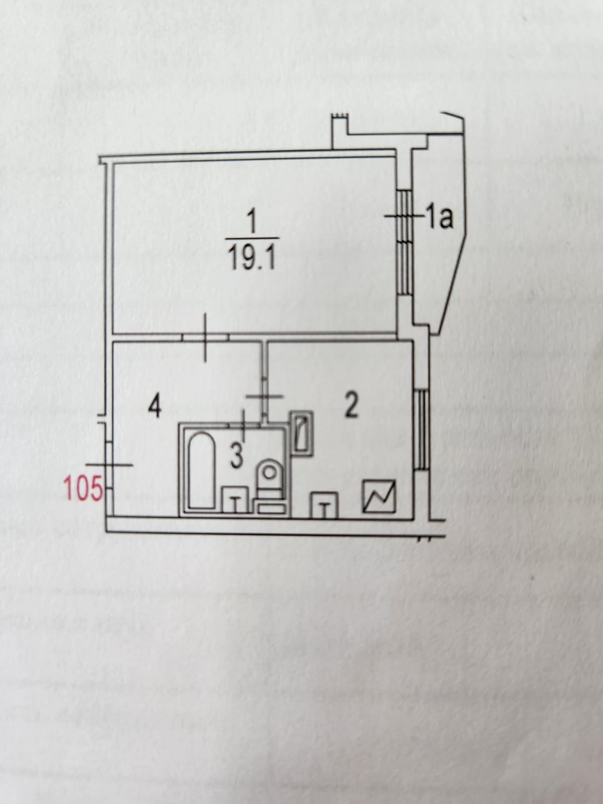Жилая площадь 19 м2