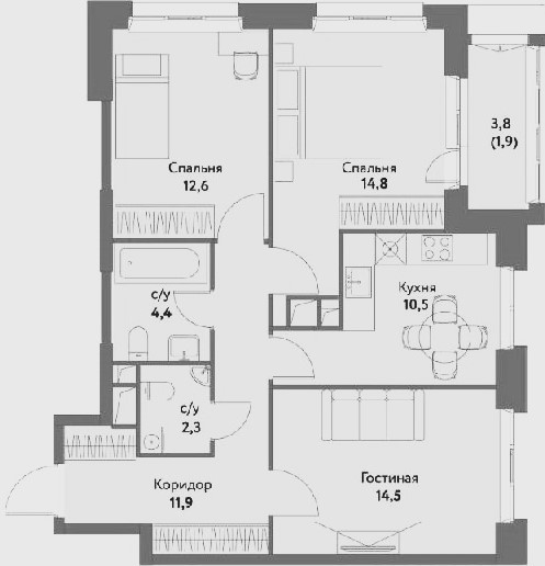 Площадь кухни 10.5 м2