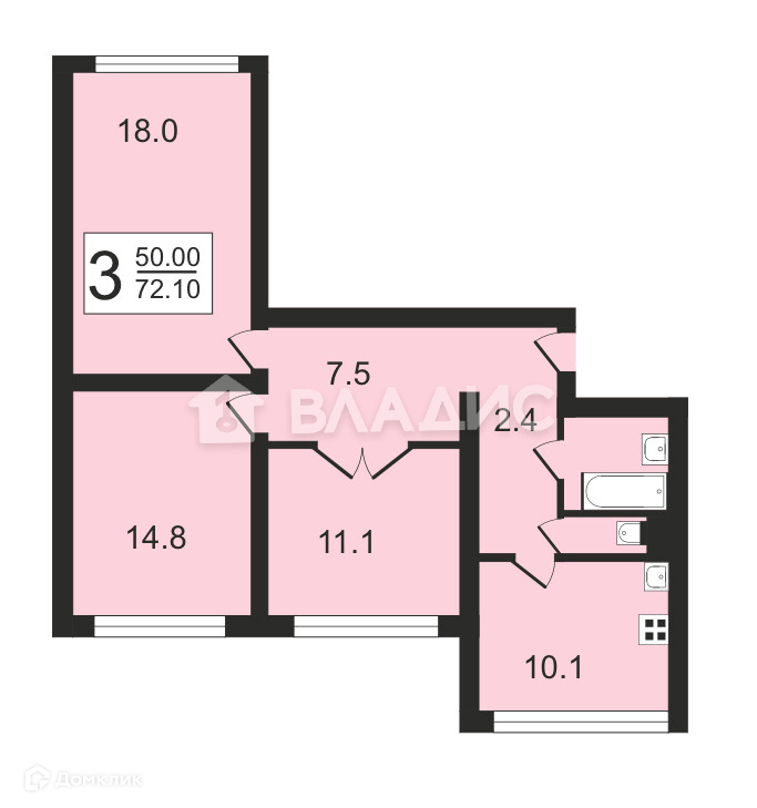 - Общая площадь 72,1 м2, отличная планировка;