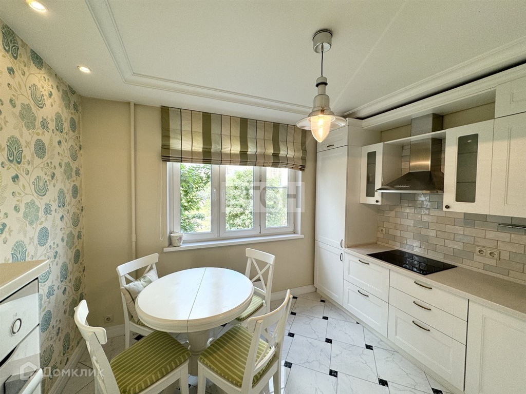 Кухня (10,2 м2): Стены –дизайнерские английский обои, американская краска PittsburghPaints плитка, пол - керамогранит со вставками натурального мрамора, потолок – покраска, гарнитур – Мария, подоконник – искусственной камень, столешница из акрилового камня, духовой шкаф со встроенной СВЧ – Bosсh, индукционная варочная панель – Bosсh, встроенный холодильник – Gorenje, встроенная стиральная машина –Siemens, вытяжка - Aristonhotpoint, телевизор – Samsung,фильтр очистки воды – Atollcобратным осмосом.