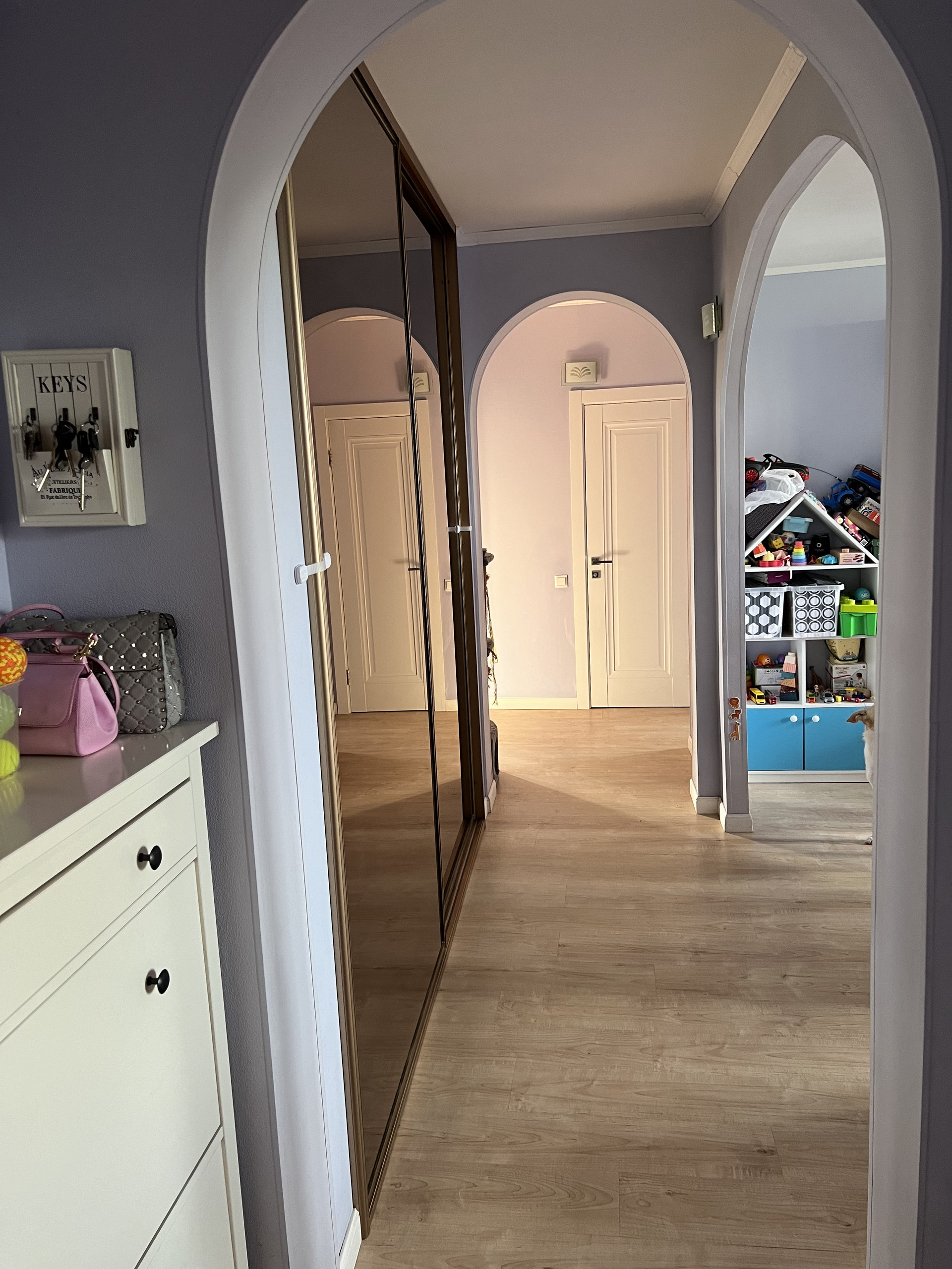 Комнаты изолированные: 18, 15, 13, кухня 9 кв.м. Два балкона, широкий коридор со огромным встроенным шкафом (под потолок). В жилых комнатах (18 и 15) имеются вместительные шкафы (остаются).