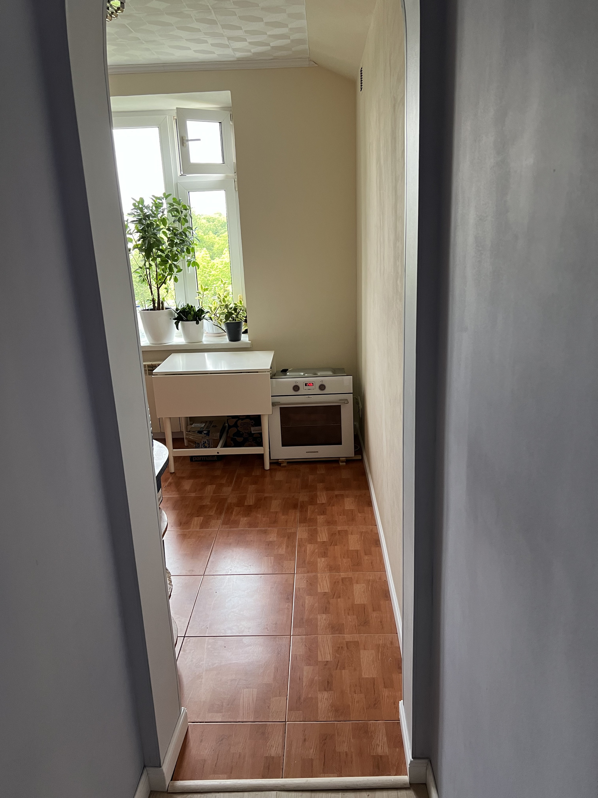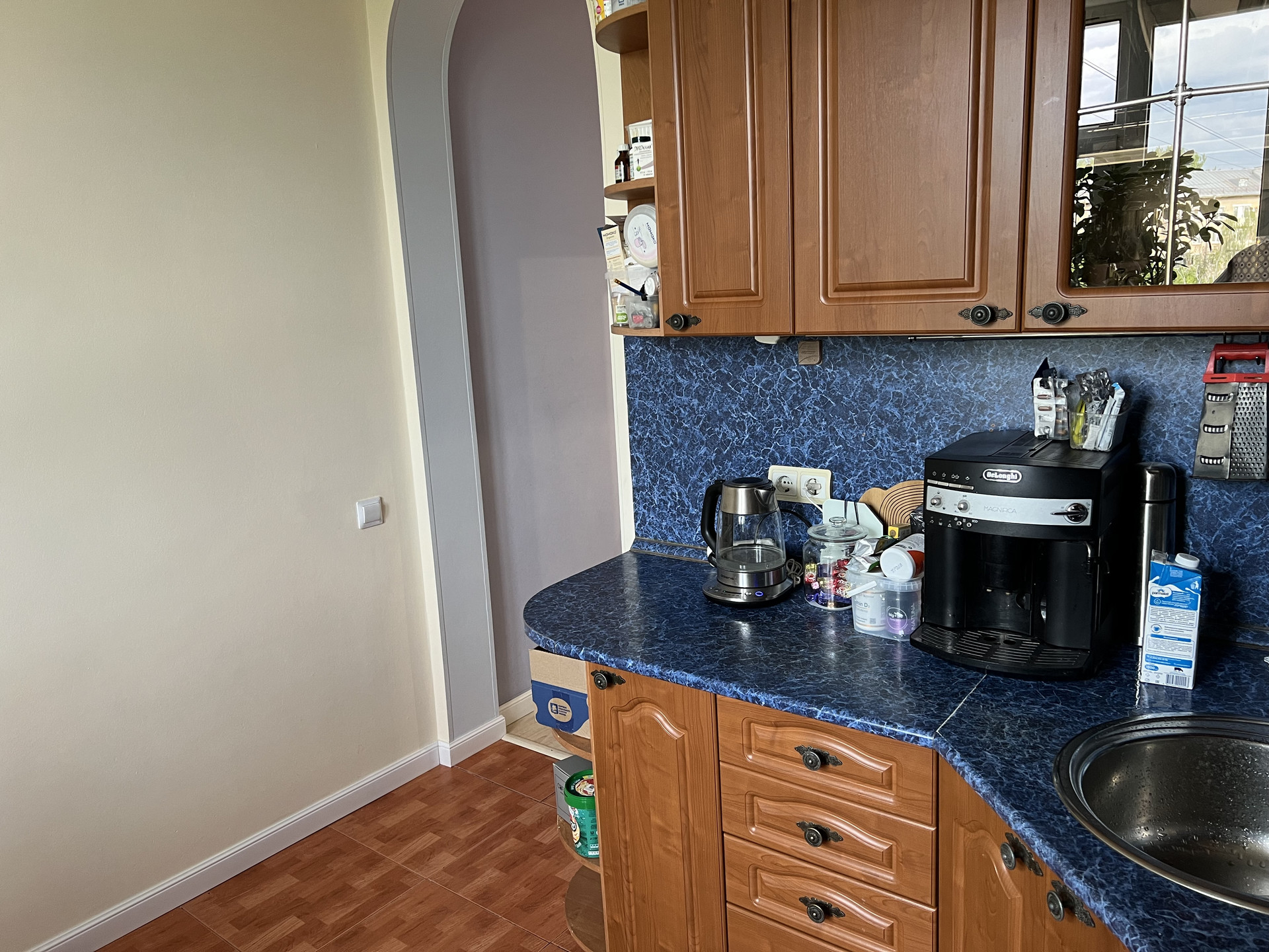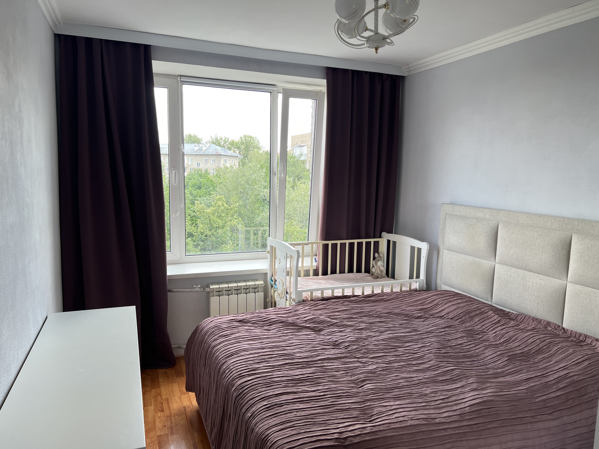 Квартира светлая и очень теплая (зимой всегда частично перекрываем батареи - жарко). Окна выходят на северо-запад (1 комната) и северо-восток (2 комнаты и кухня).