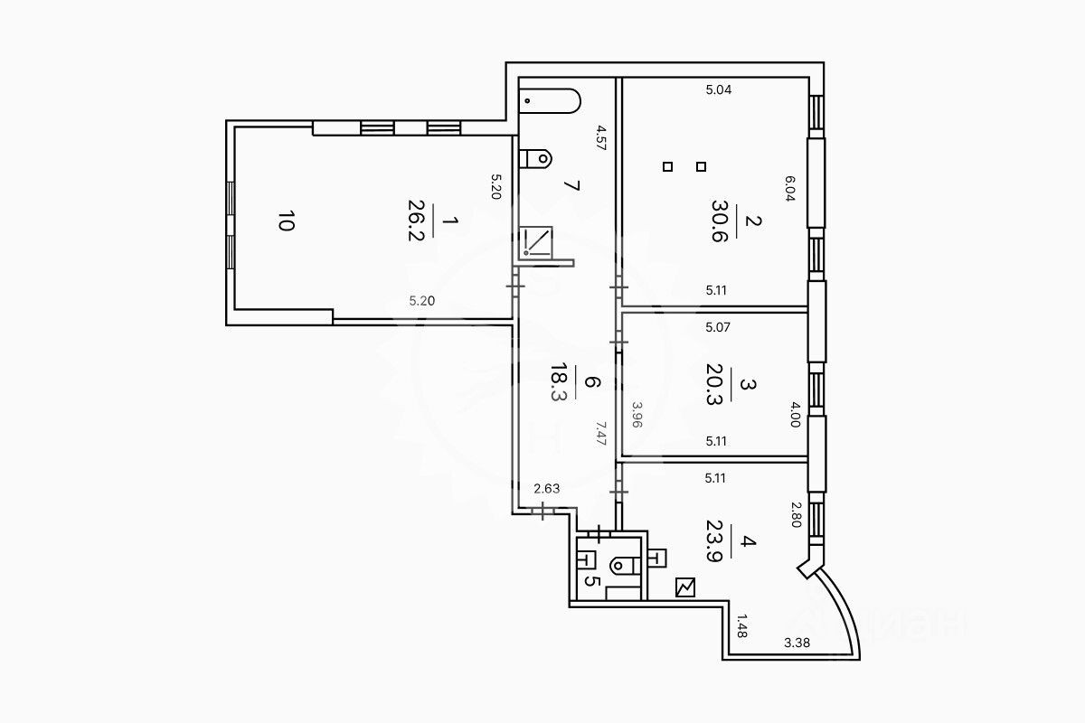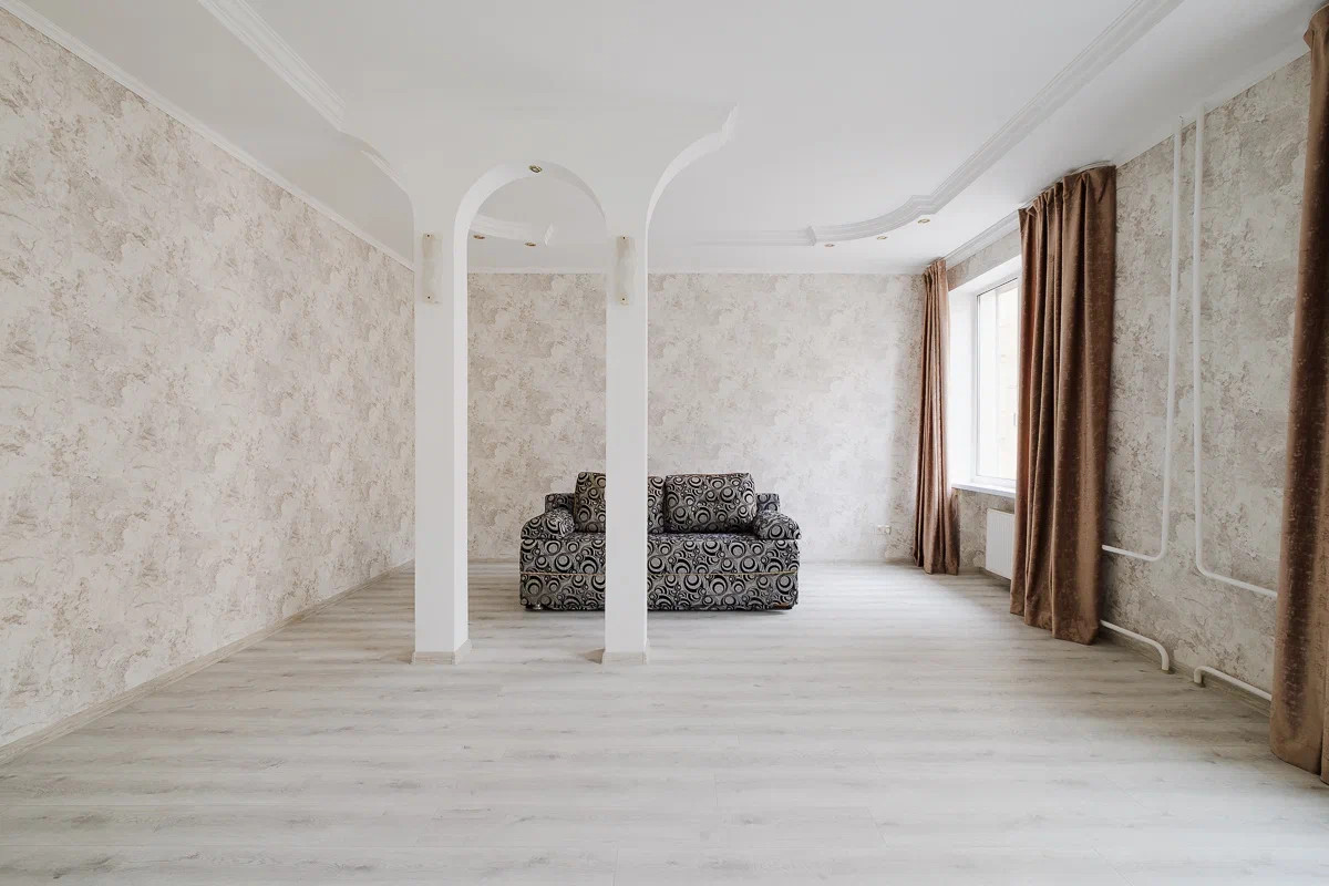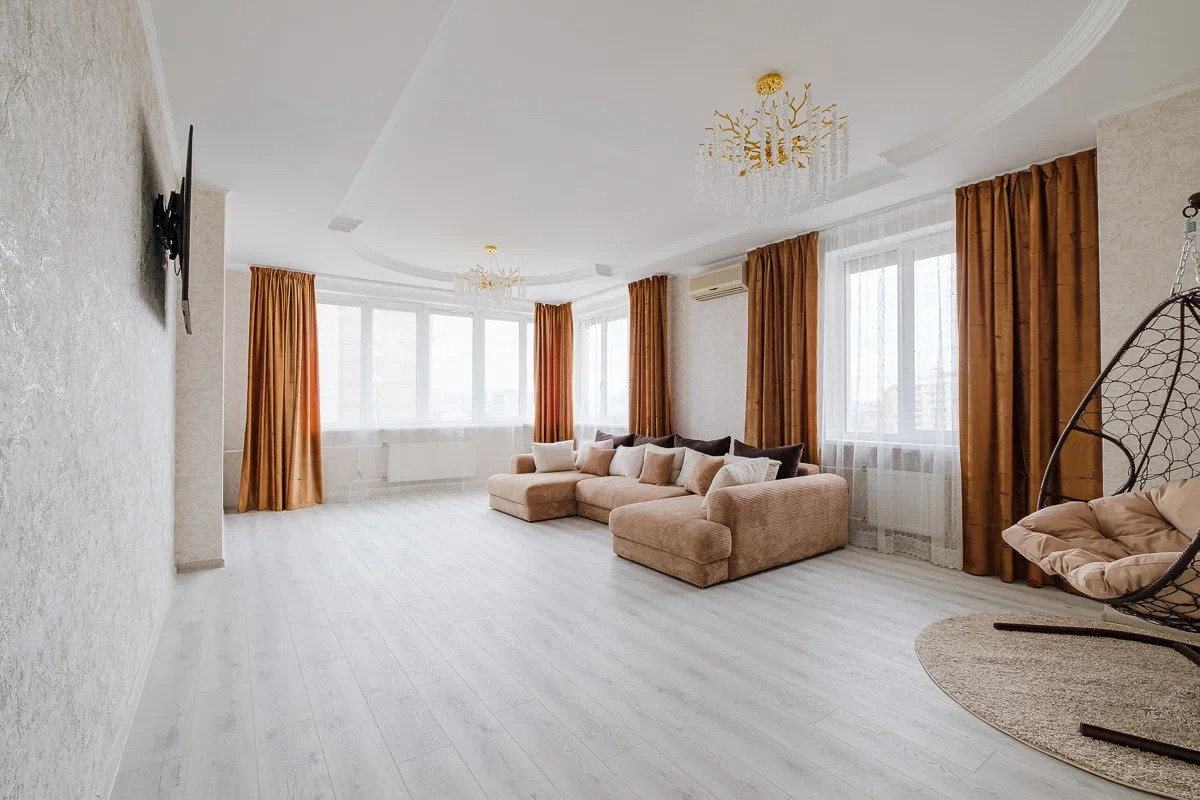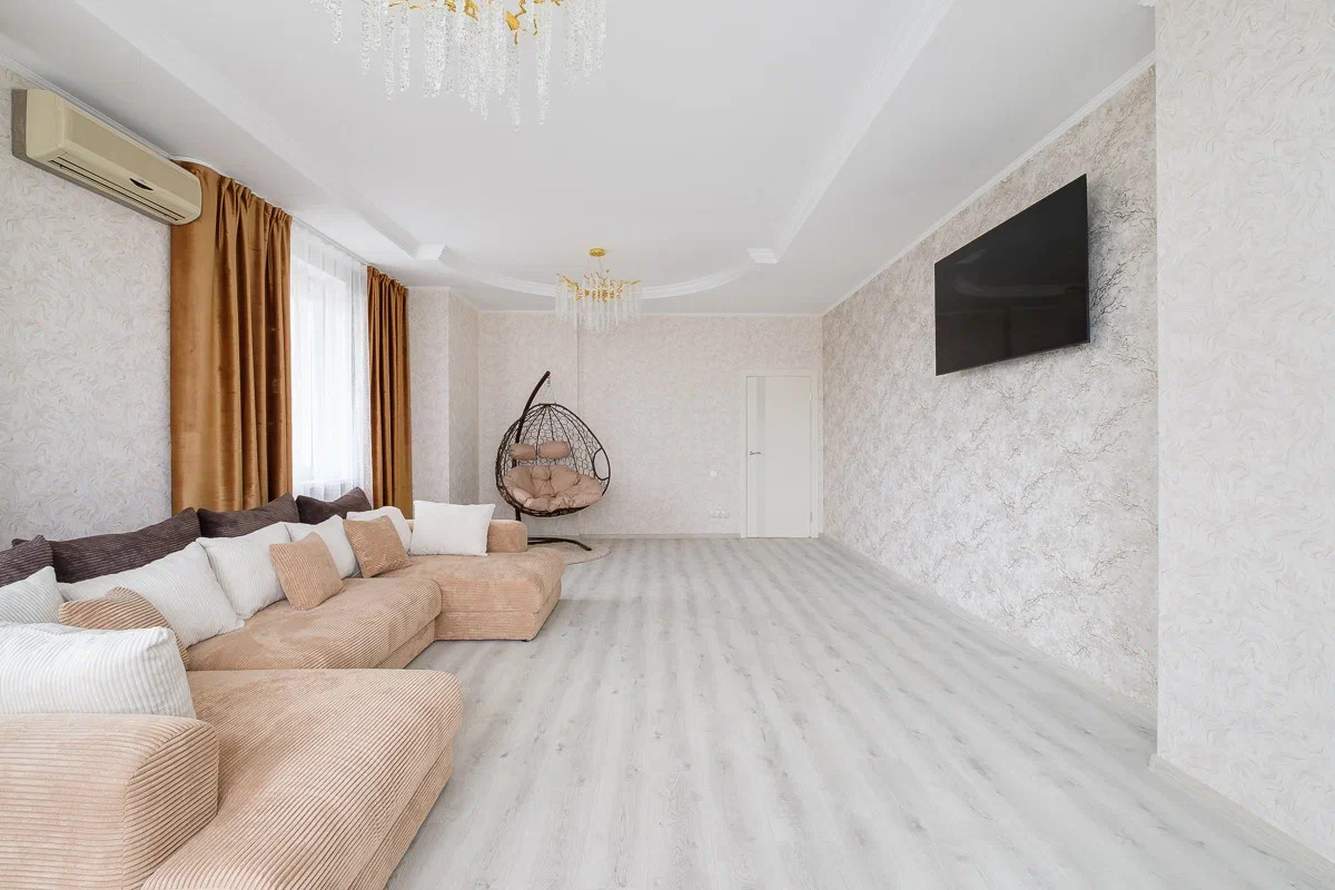 Три изолированные комнаты, два санузла, просторная кухня с диваном.