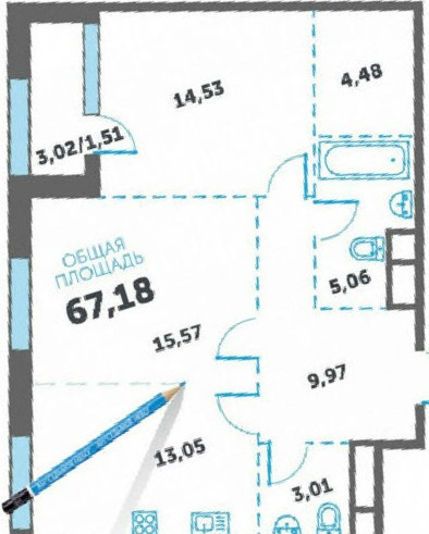 Общая площадь 68 м2