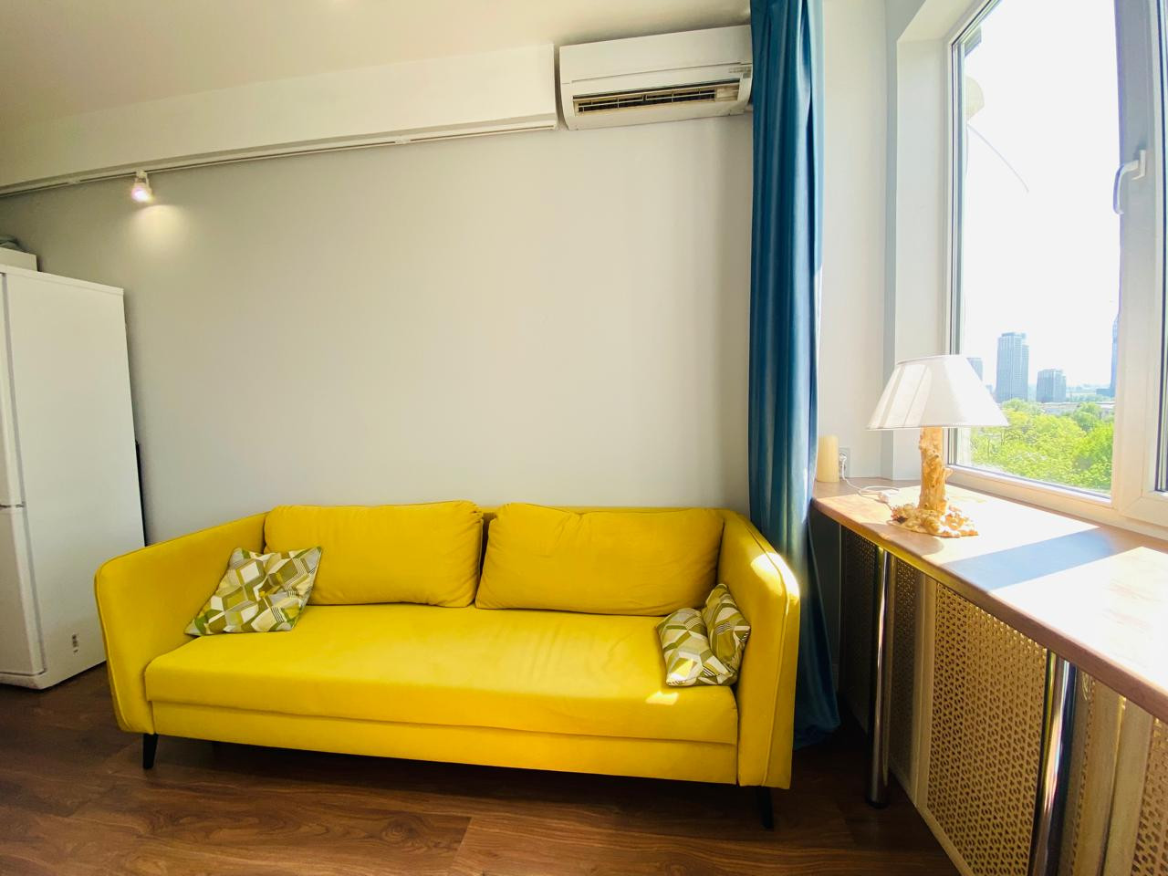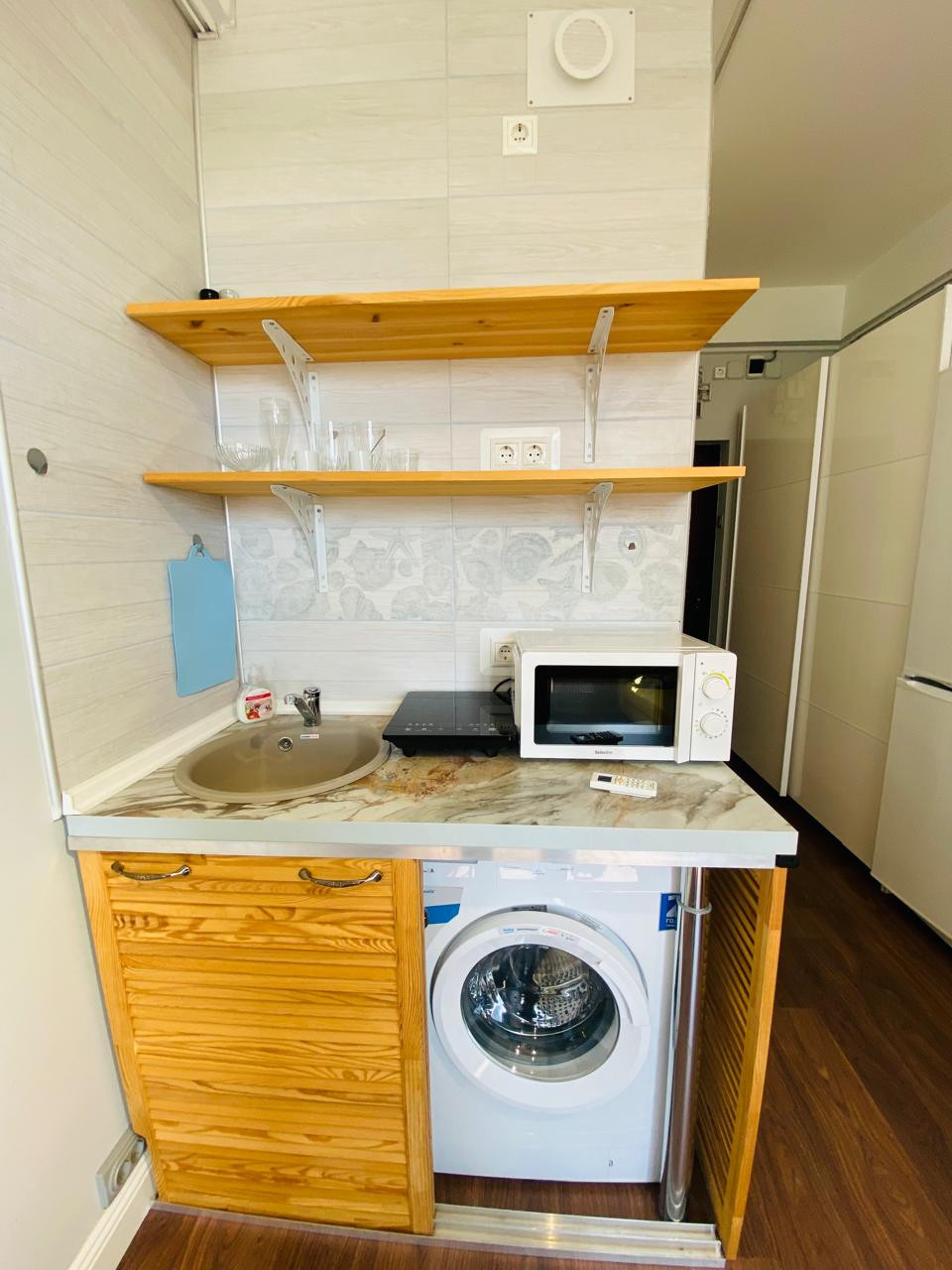 Продам апартамент-студию с новым ремонтом, общая площадь в ЕГРН 17,2 кв.м. Сделан новый ремонт, в ванной полы с подогревом, большое моно окно - очень светло. Есть большой шкаф, большой холодильник, стиральная машина, кондиционер и даже посуда. Установлен электрический боллер.