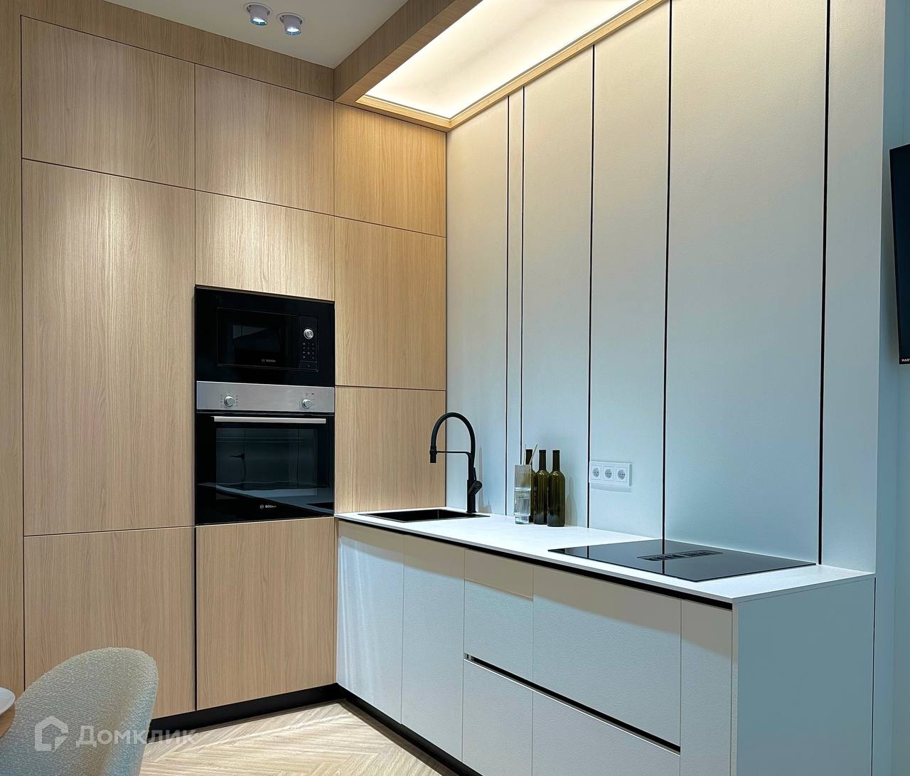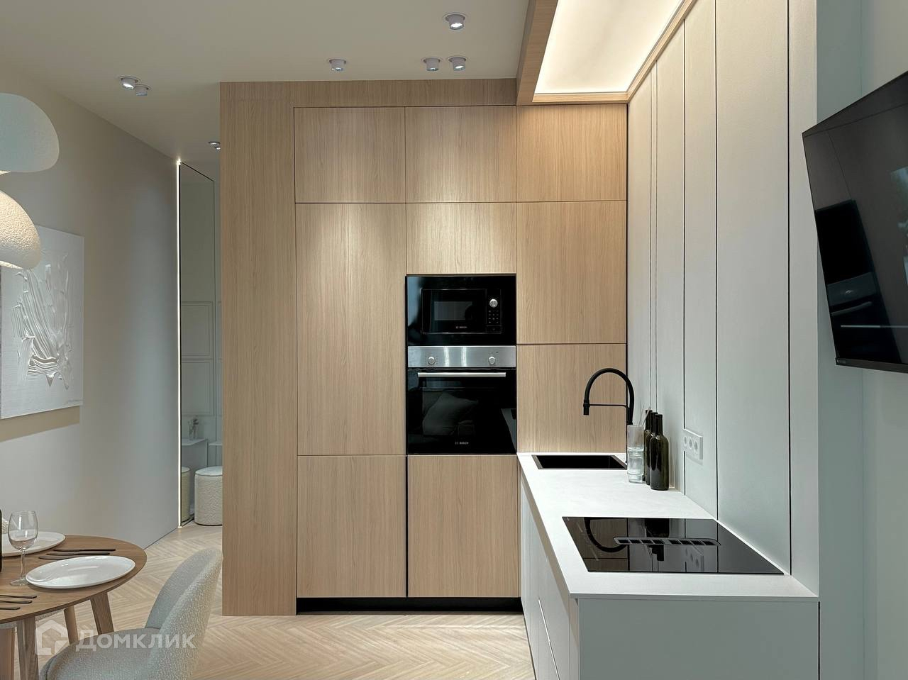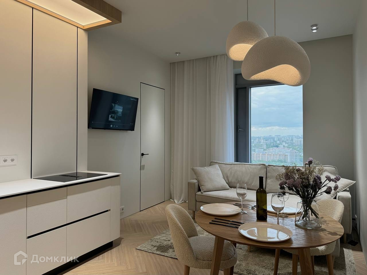 Квартира расположена на 36 этаже, общая площадь 46.2 кв.м. В квартире выполнен качественный и современный дизайнерский ремонт. Установлена дорогая электрика и сантехника рехао а так же система антипротечки, множество источников освещения для создания различных сценариев света. Вся мебель сделана на заказ из премиальных материалов. В кухонном гарнитуре установлена техника Bosh, варочная панель со встроенной вытяжкой.