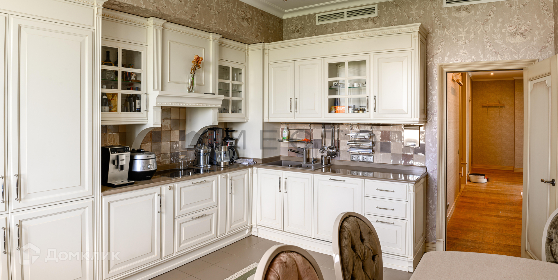 Установлена встроенная система кондиционирование Daikin. Вся бытовая техника Gaggenau, холодильник Liebherr. TV и музыкальный центр Bang&Olufsen. Стиральная и сушильная машина Miele. Сантехника Villeroy&Boch, тёплые полы. Люстры Schonbek. Кухня итальянская BRUMMEL из массива дерева.