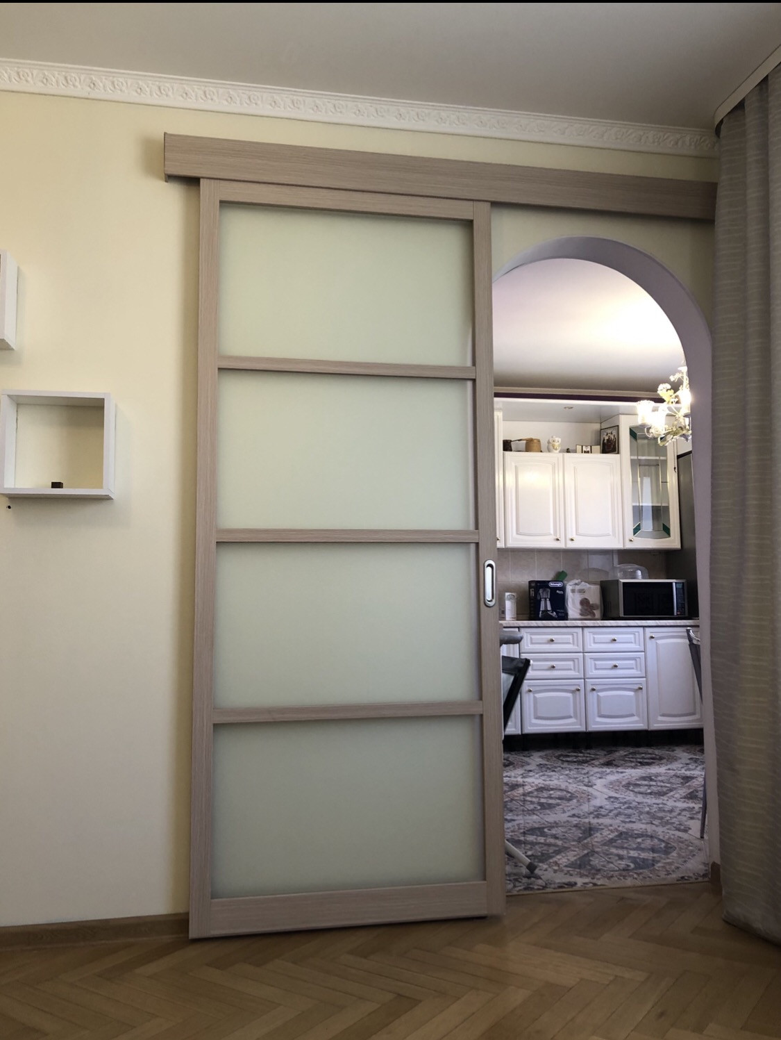 Площадь квартиры 74,7 кв.м. (по ЕГРН) + остекленная лоджия 4,5 кв.м. Гостиная проходная 19 кв.м. и две спальни - 15кв.м. и 19 кв.м., кухня 10 кв.м., санузел раздельный. Потолки 2,65м. Вид из окон на школу и Парк Победы.