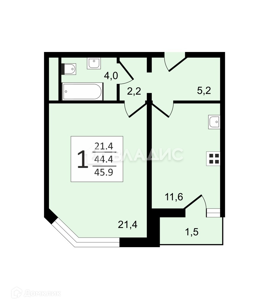 Общая площадь 45.9 м2