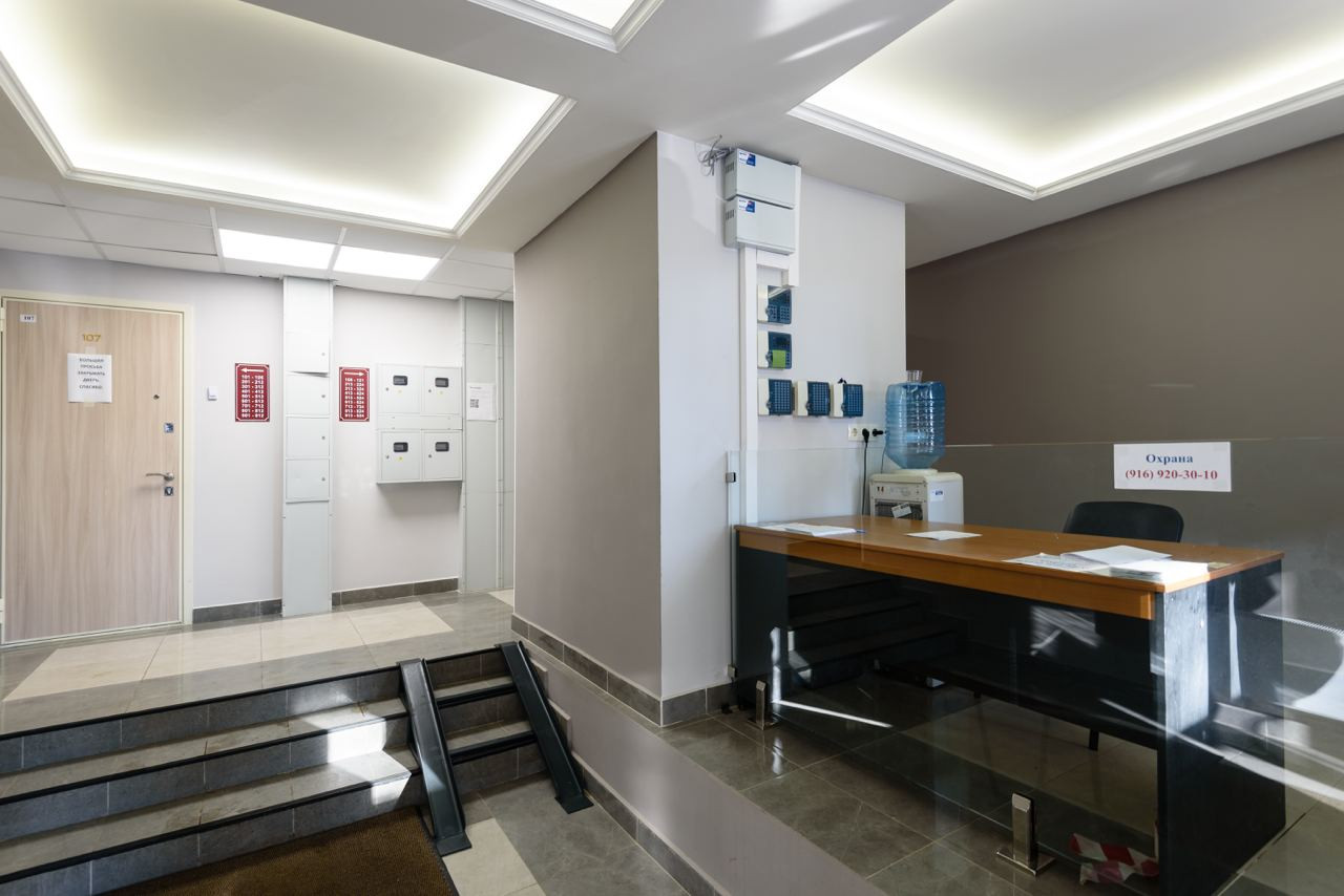 Входная группа с ресепшн, охраной ♀️, видеонаблюдением и клинингом