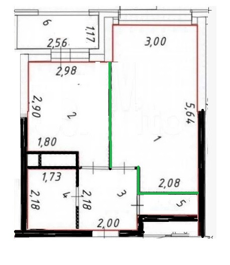 Балкон, лоджия 1 балкон