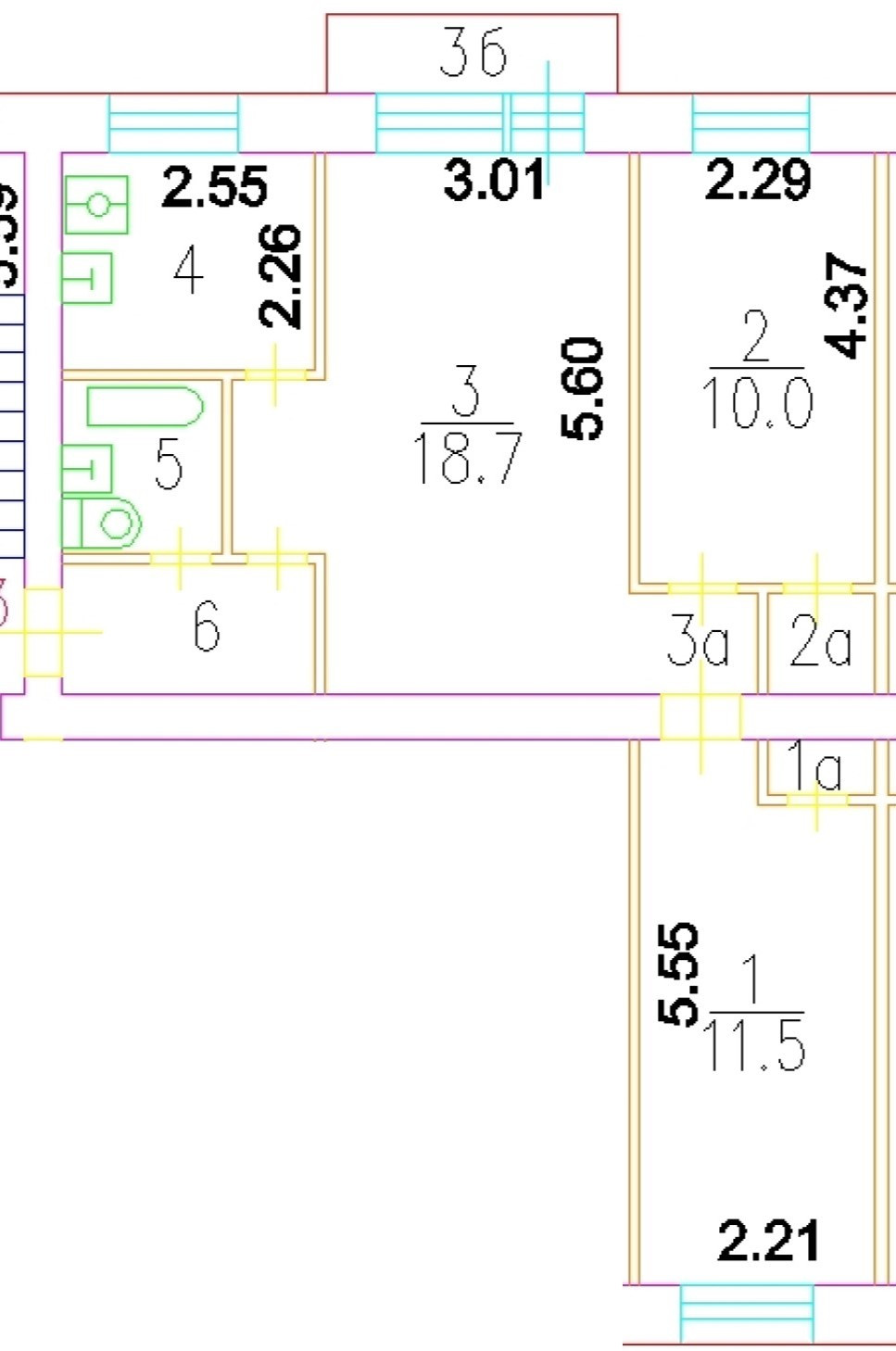 Общая площадь 55.5 м2