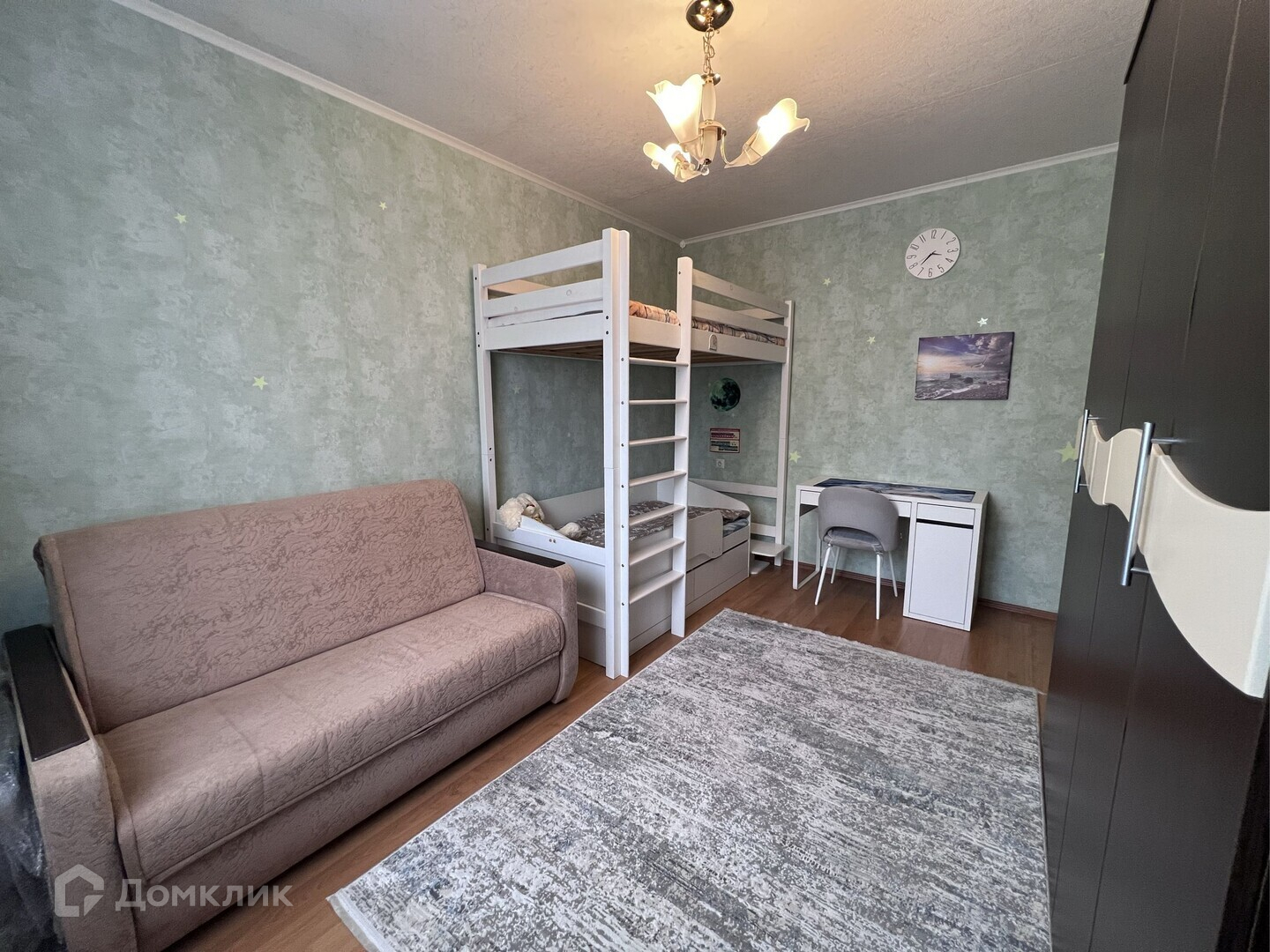 - поклеены современные обои, на полу ламинат 33 класса