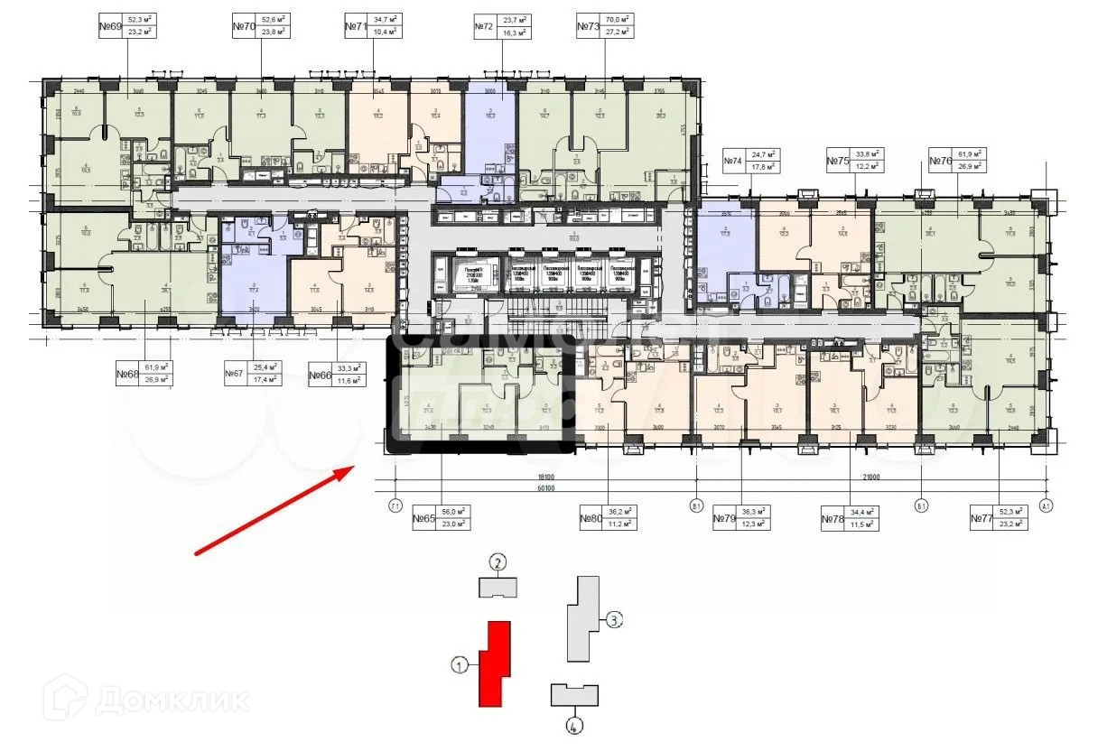 Общая площадь 56 м2