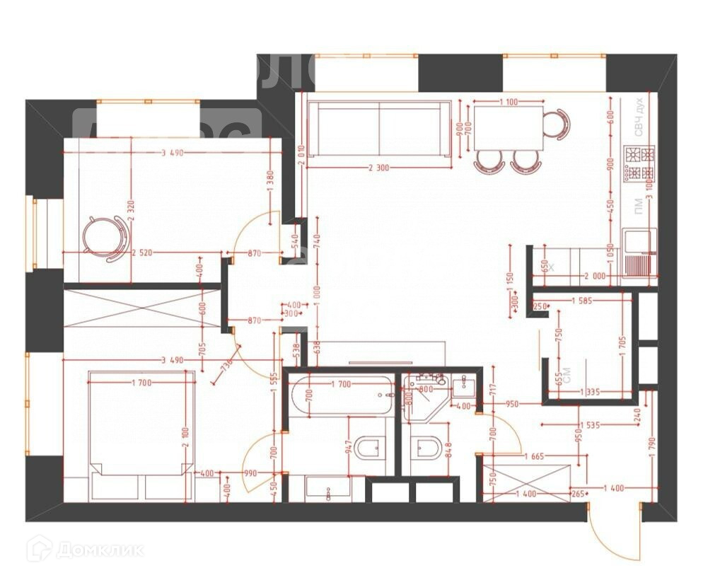 Общая площадь 57 м2