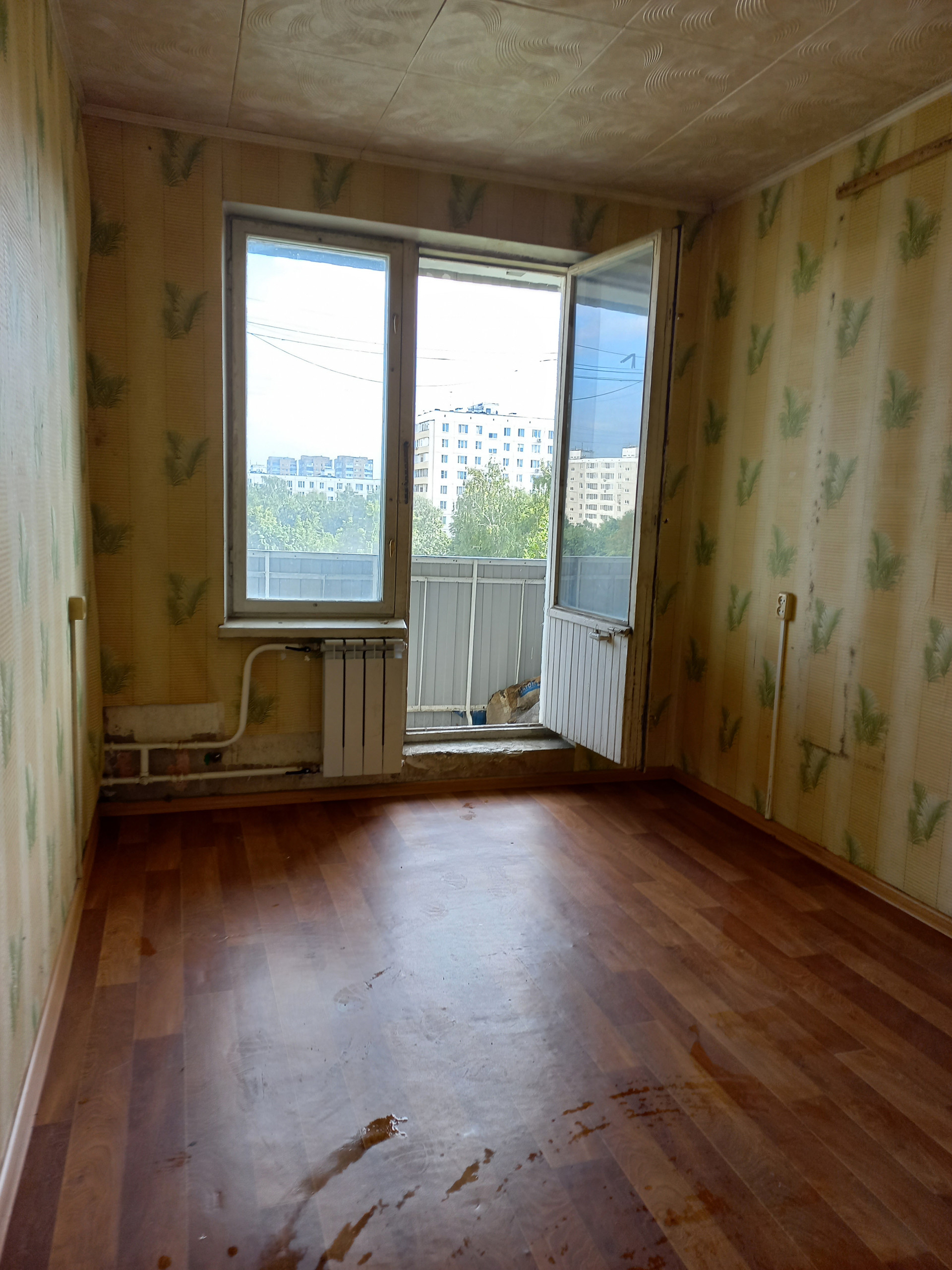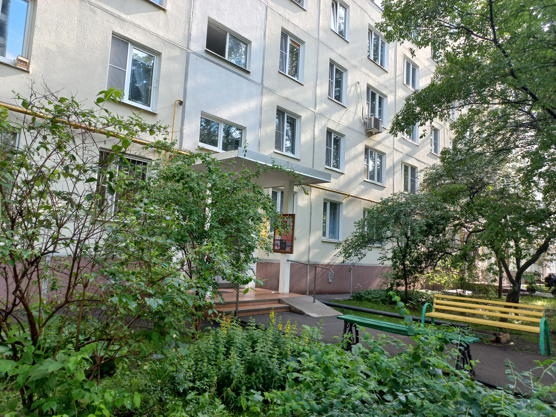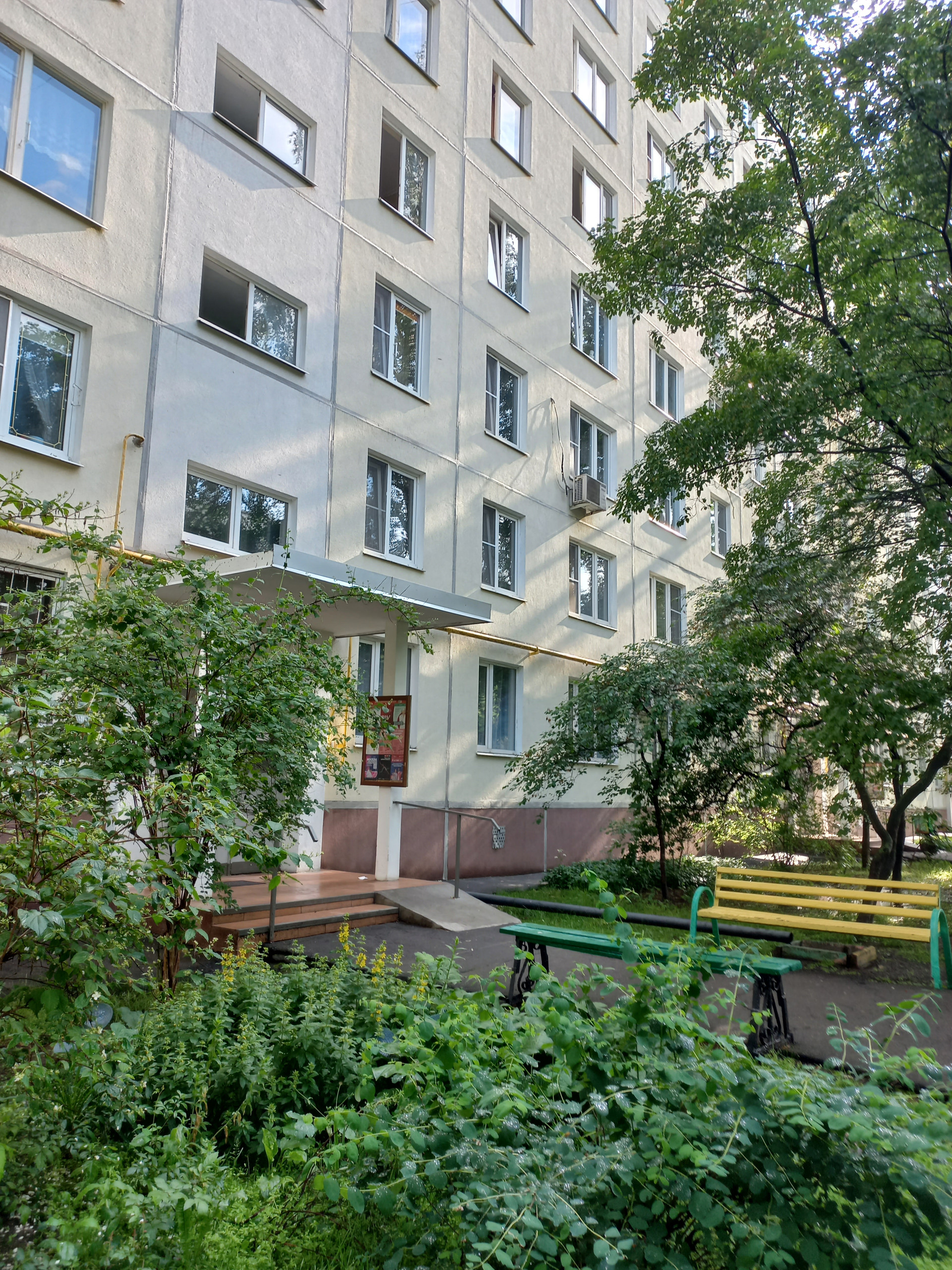 Квартира не линейная. Окна выходят на две стороны: из комнаты с балконом - на зеленый школьный двор с прекрасным обзорным видом. Три окна квартиры выходят в зеленый двор. Подъезд чистый, без посторонних запахов. См. на фото: вид из окон.