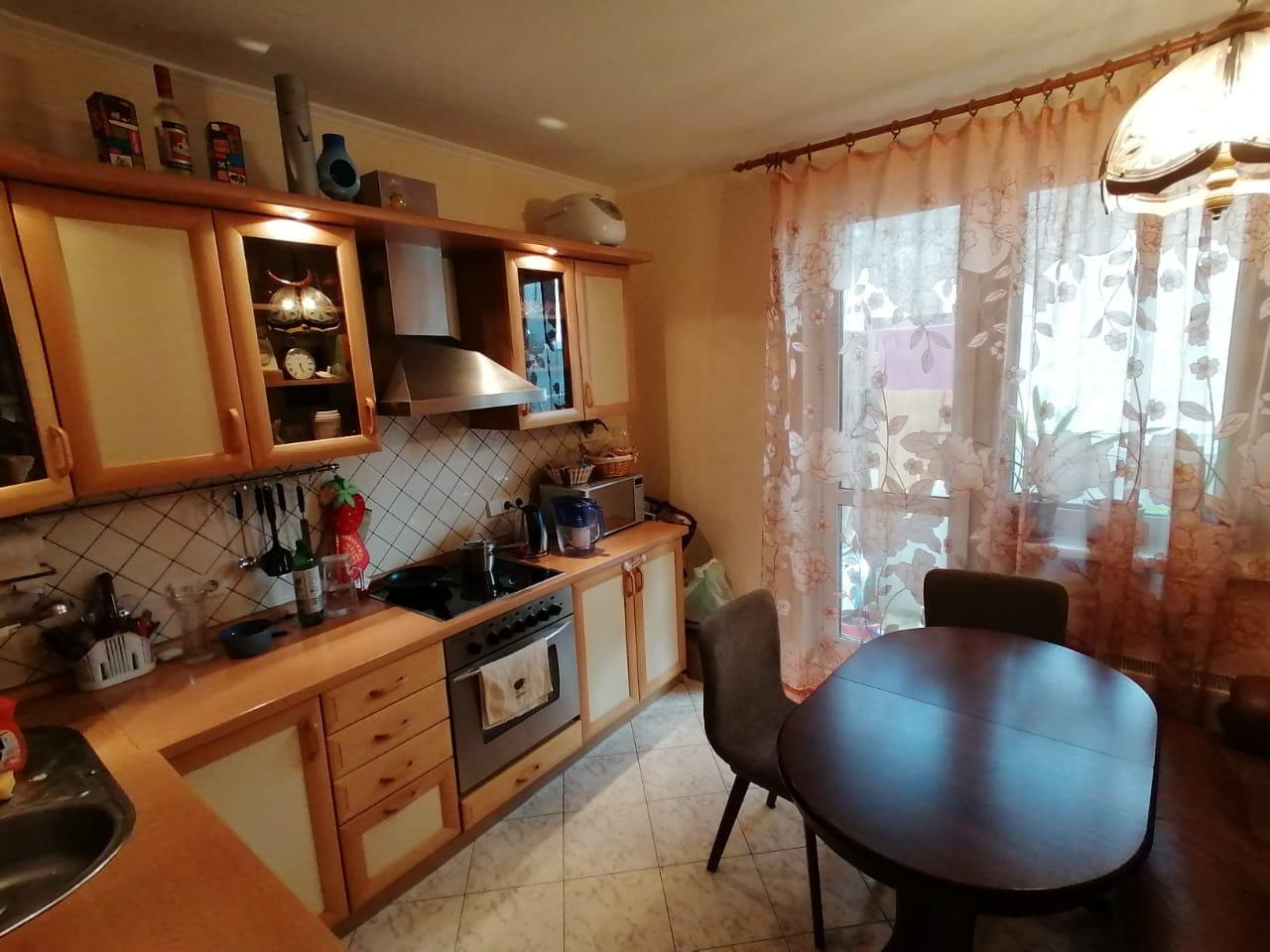 Кухня встроенная, полностью укомплектована встроенной бытовой техникой.