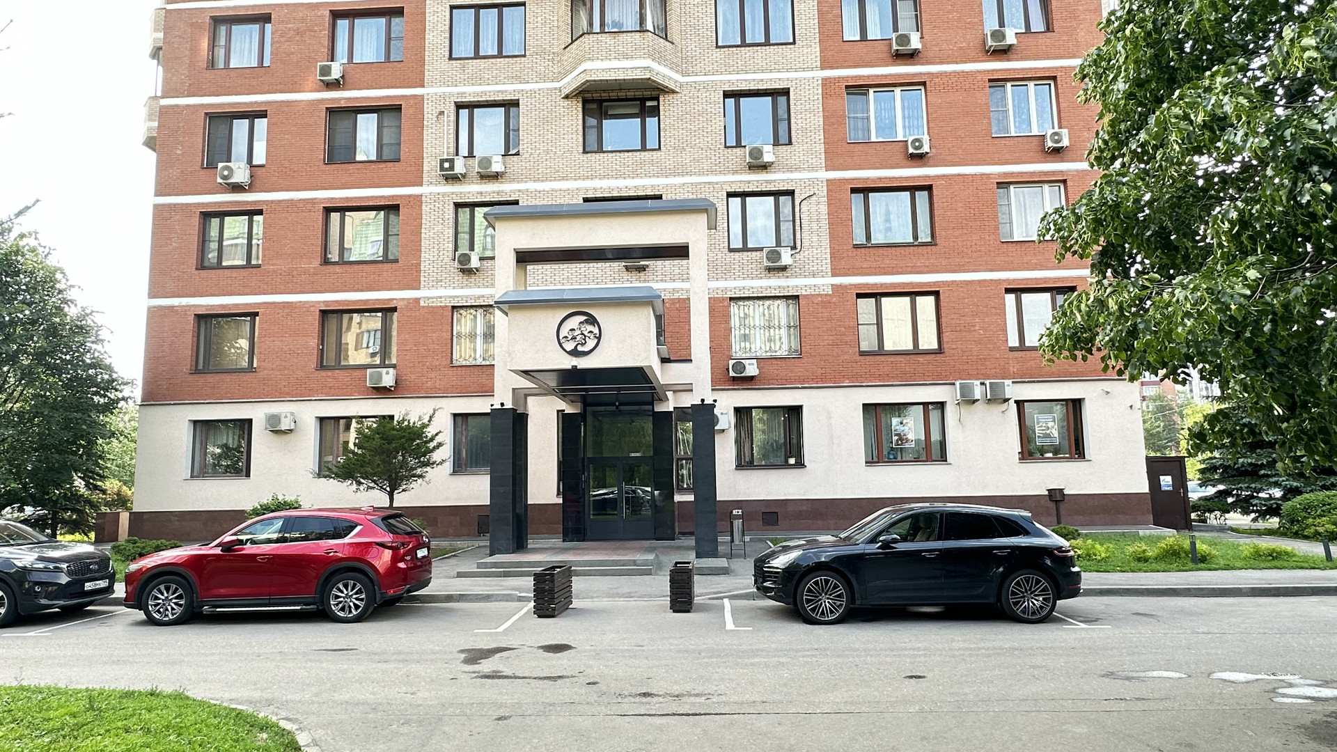 •Элитный кирпичный дом с ландшафтным дизайном и собственной парковочной зоной создает особую атмосферу комфорта и роскоши.