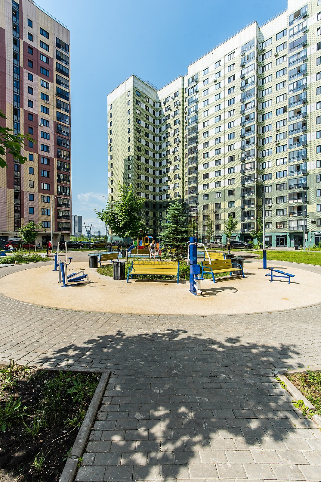 Благоустроенный, современный район с большим количеством магазинов, кафе, детских и спортивных площадок, рядом озеро с прогулочной набережной и собственным пляжем.
