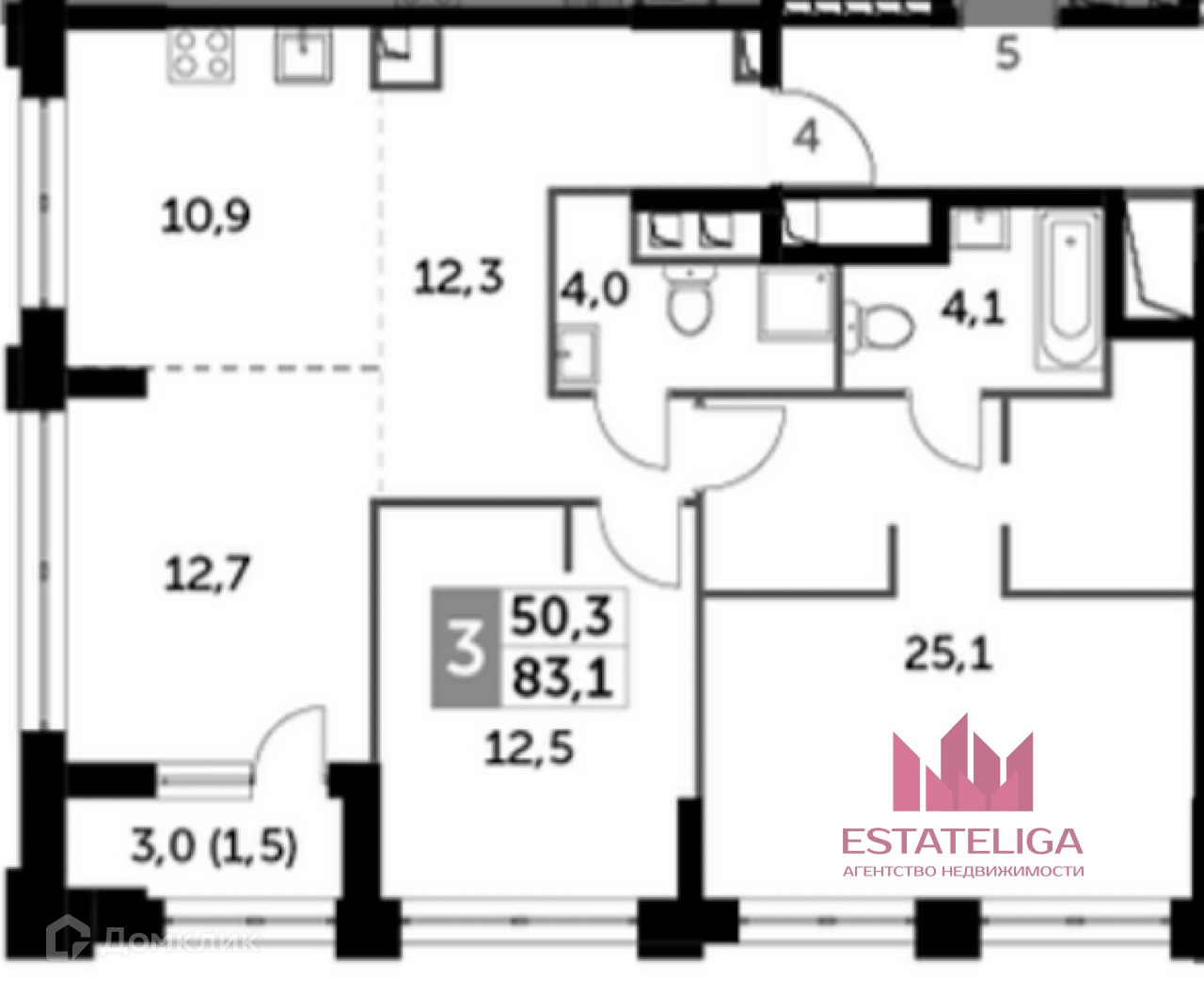 Количество комнат 3