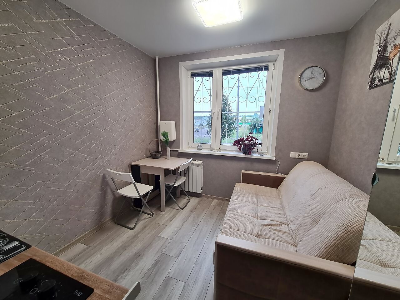 Металлическая дверь, совмещенный санузел, отдельные счетчики на свет и воду.