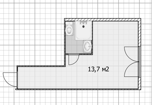 Общая площадь 13.7 м2