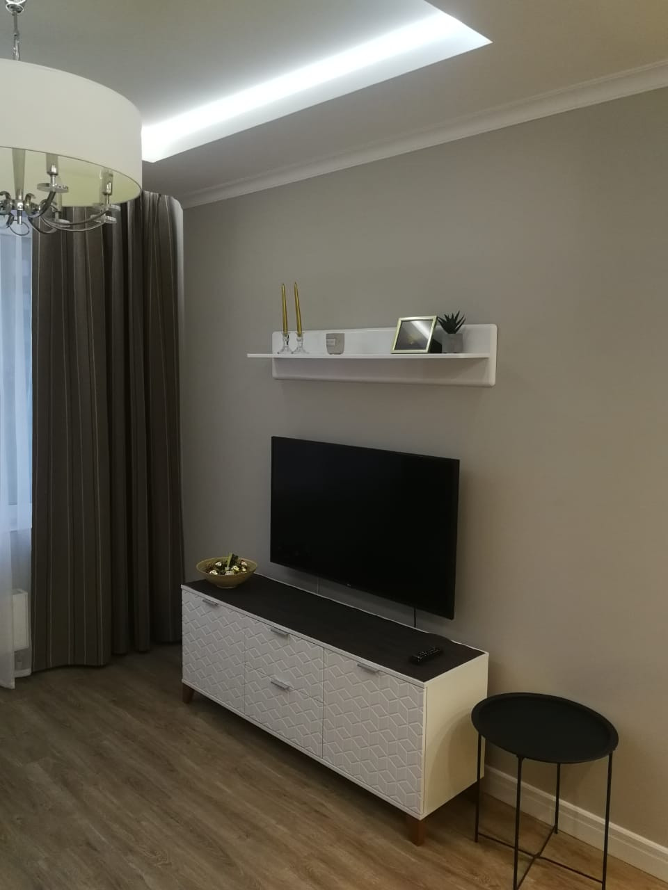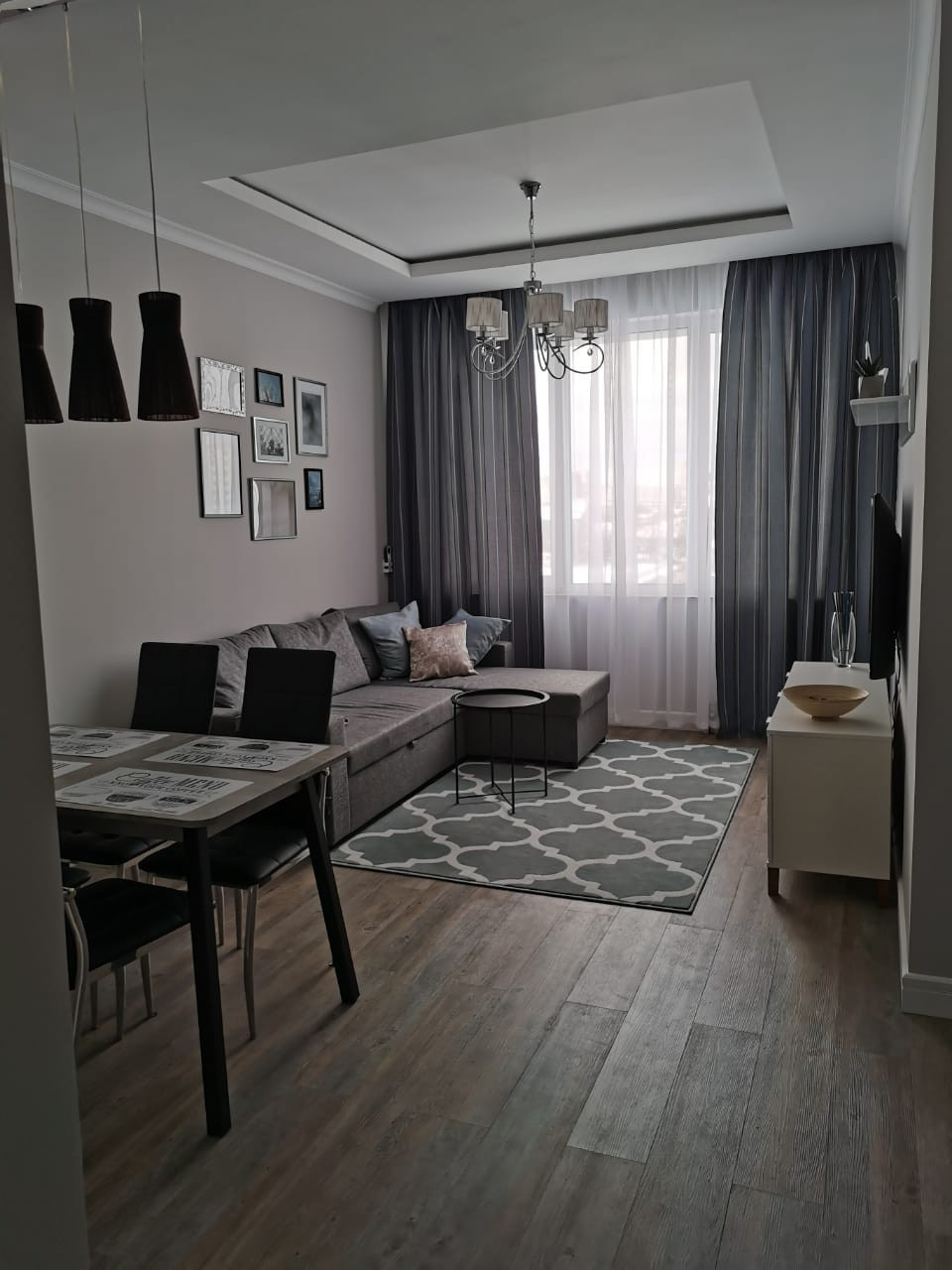 Кухня-гостиная, изолированная спальня и отдельная гардеробная для хранения вещей, оборудованы новой мебелью и техникой которая входит в стоимость. В квартире смонтирована система вентиляции и кондиционирования воздуха. Во всех помещениях предусмотрен   проводной высокоскоростной интернет. В кухню встроены посудомойка, духовой шкаф и индукционная плита, так же установлена микроволновка и большой холодильник. В санузле современная стиральная машинка с функцией сушки. В спальне кровать с ортопедическим матрасом и подъемным механизмом. В гостиной раскладной диван. Во всей квартире на полу качественный кварцвинил, которому не страшен потоп.