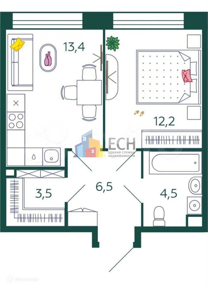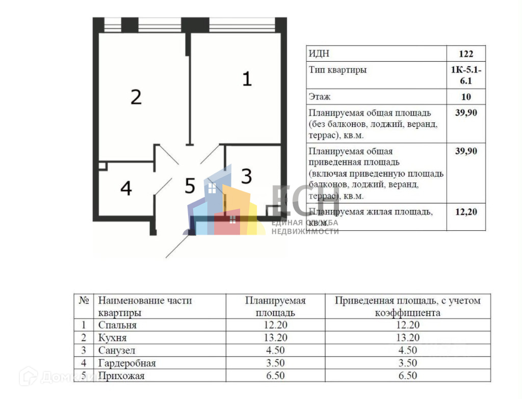 Общая площадь 39 м2
