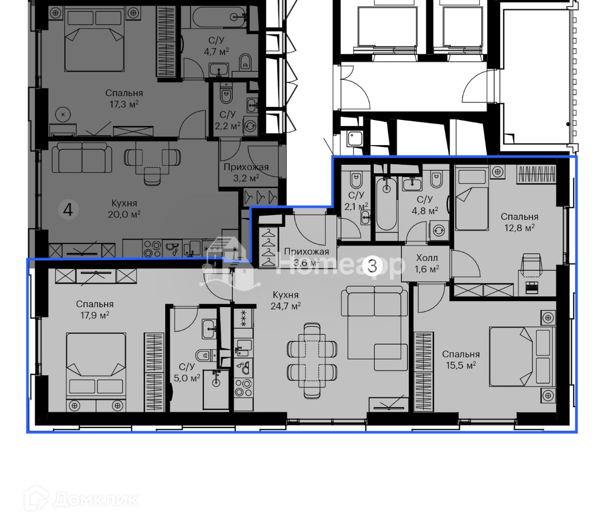 - Просторные комнаты 18 м² + 15,5 м² + 13 м².