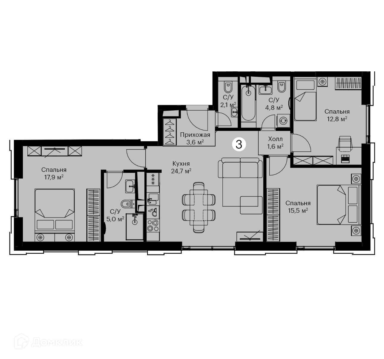 Количество комнат 3