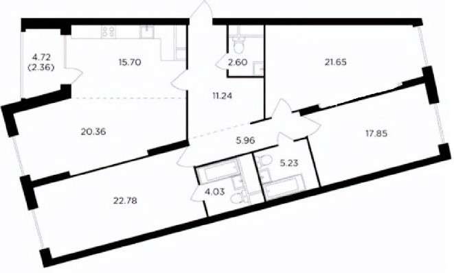 Жилая площадь 87.6 м2