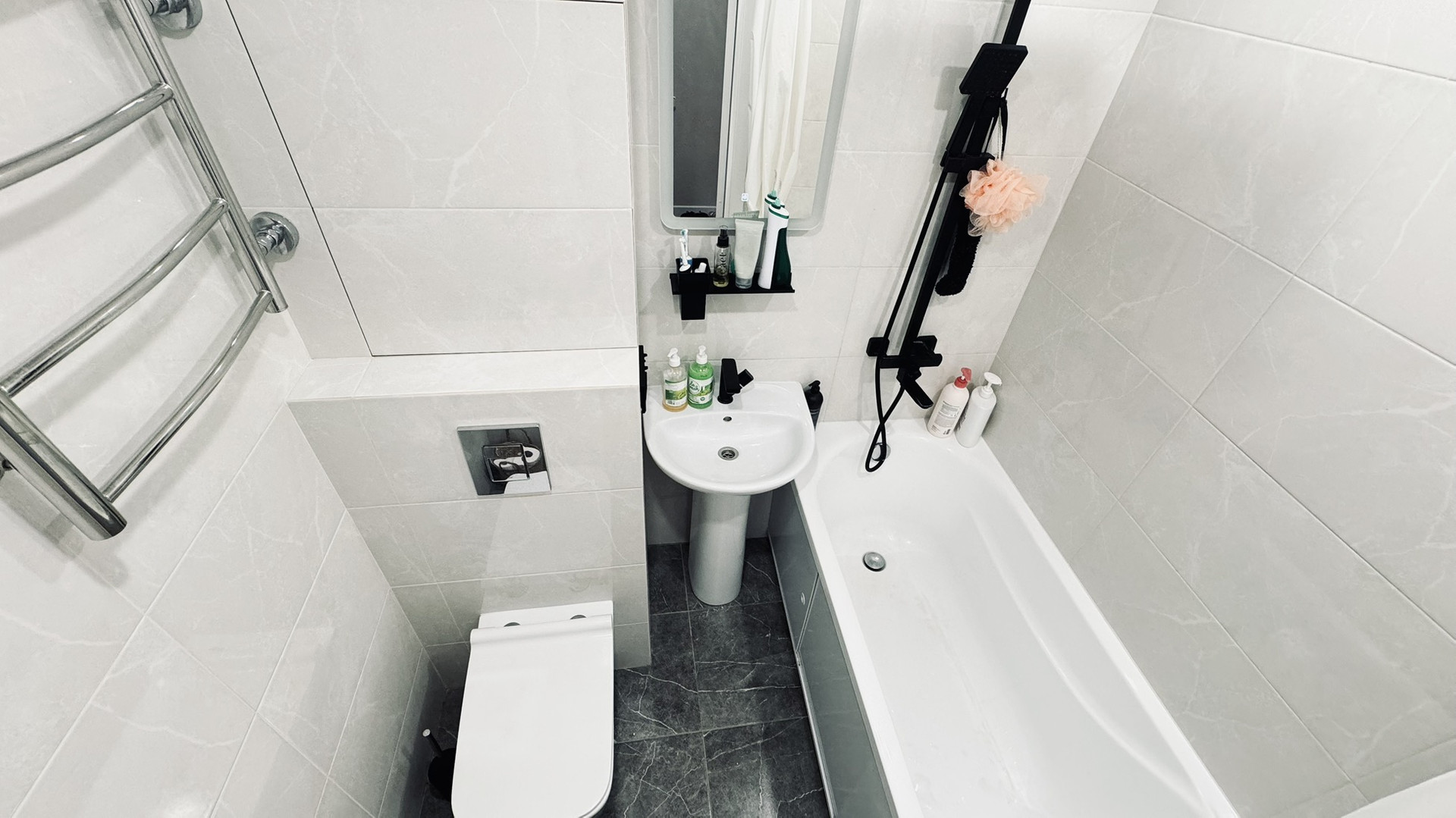 Совмещенный санузел, новая сантехника, ванная, инсталляция.