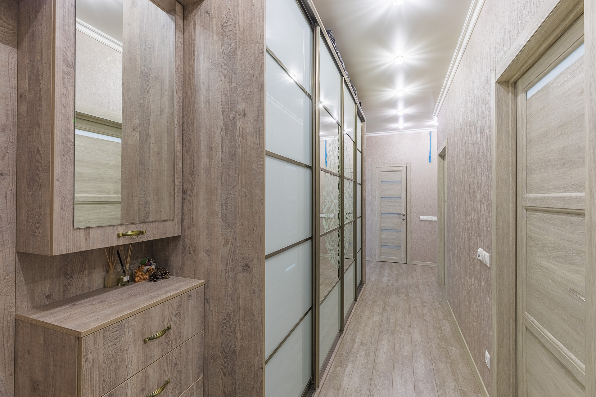 Квартира с дизайнерским ремонтом, выполненным из качественных, импортных материалов. Ремонт делали для себя, поэтому продумали каждую мелочь . Огромное количество встроенных шкафов в том числе с витражами ручной работы, гардеробная комната.