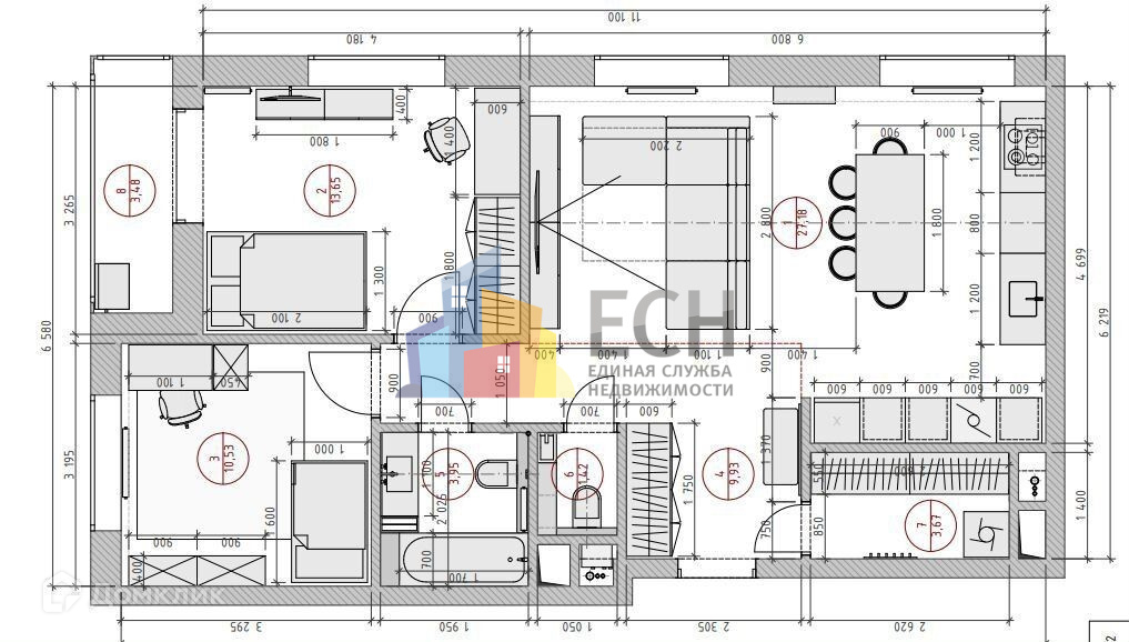 Жилая площадь 52 м2