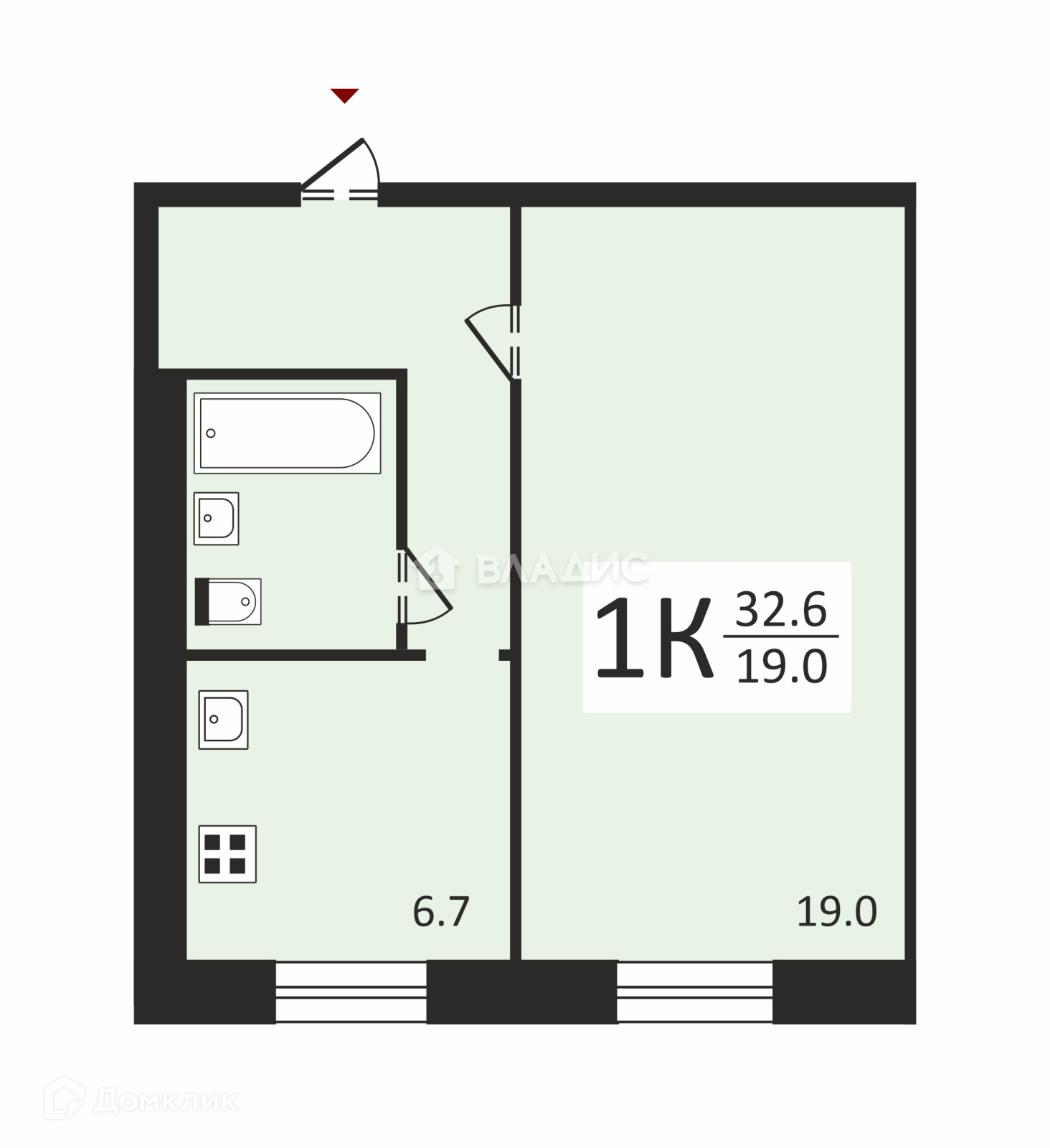 Общая площадь 32.6 м2