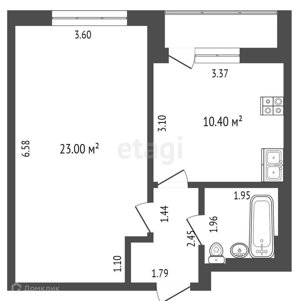 Общая площадь 40.4 м2