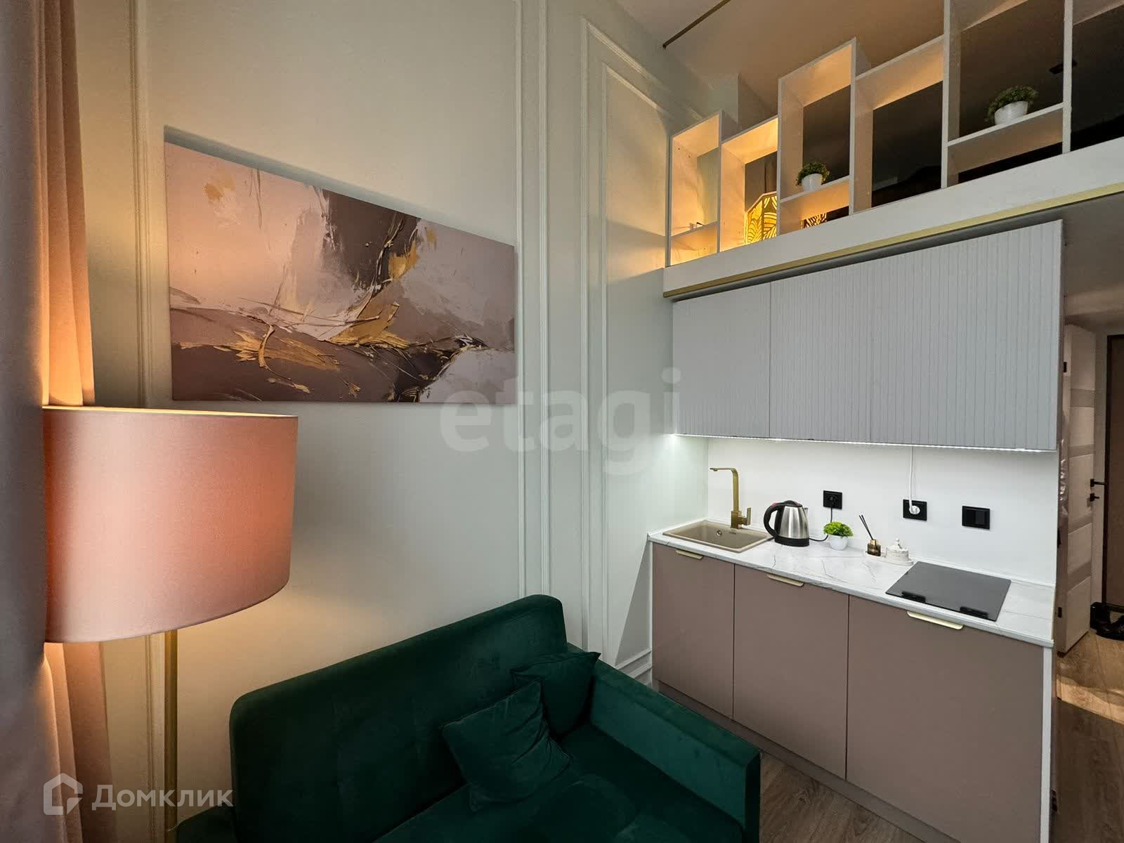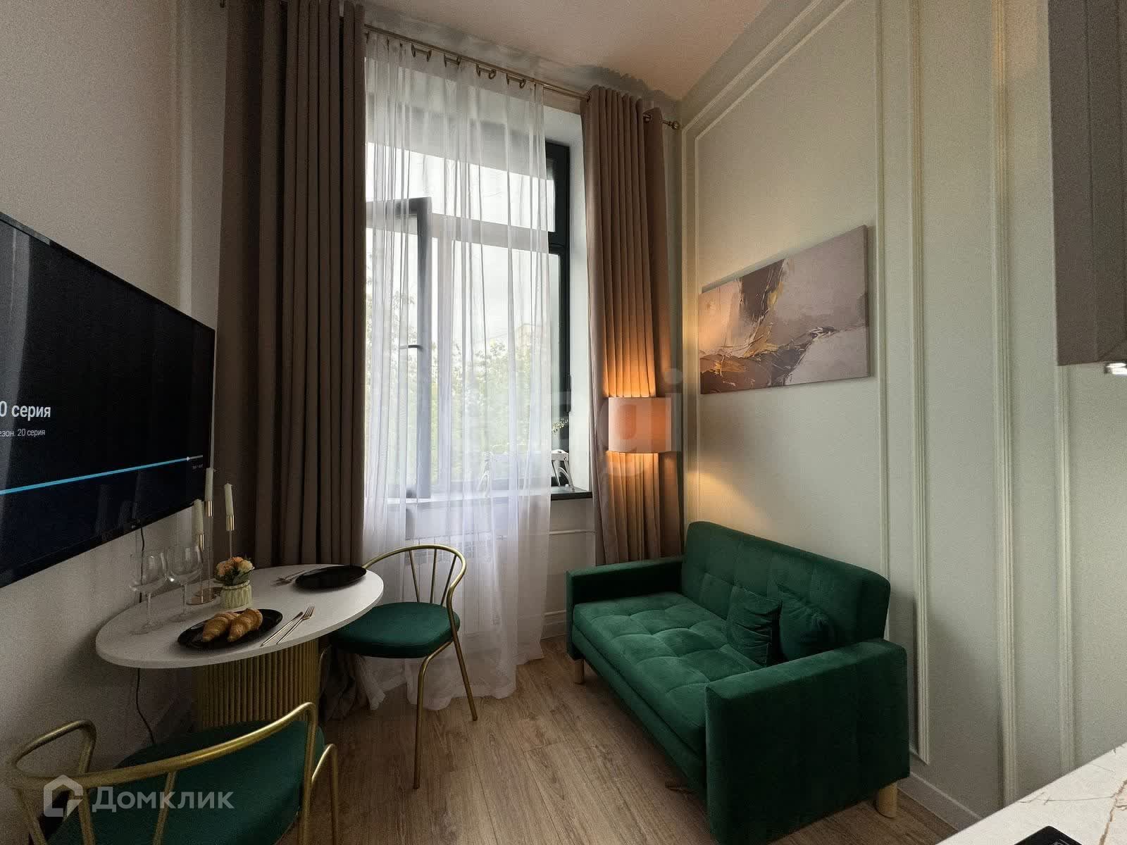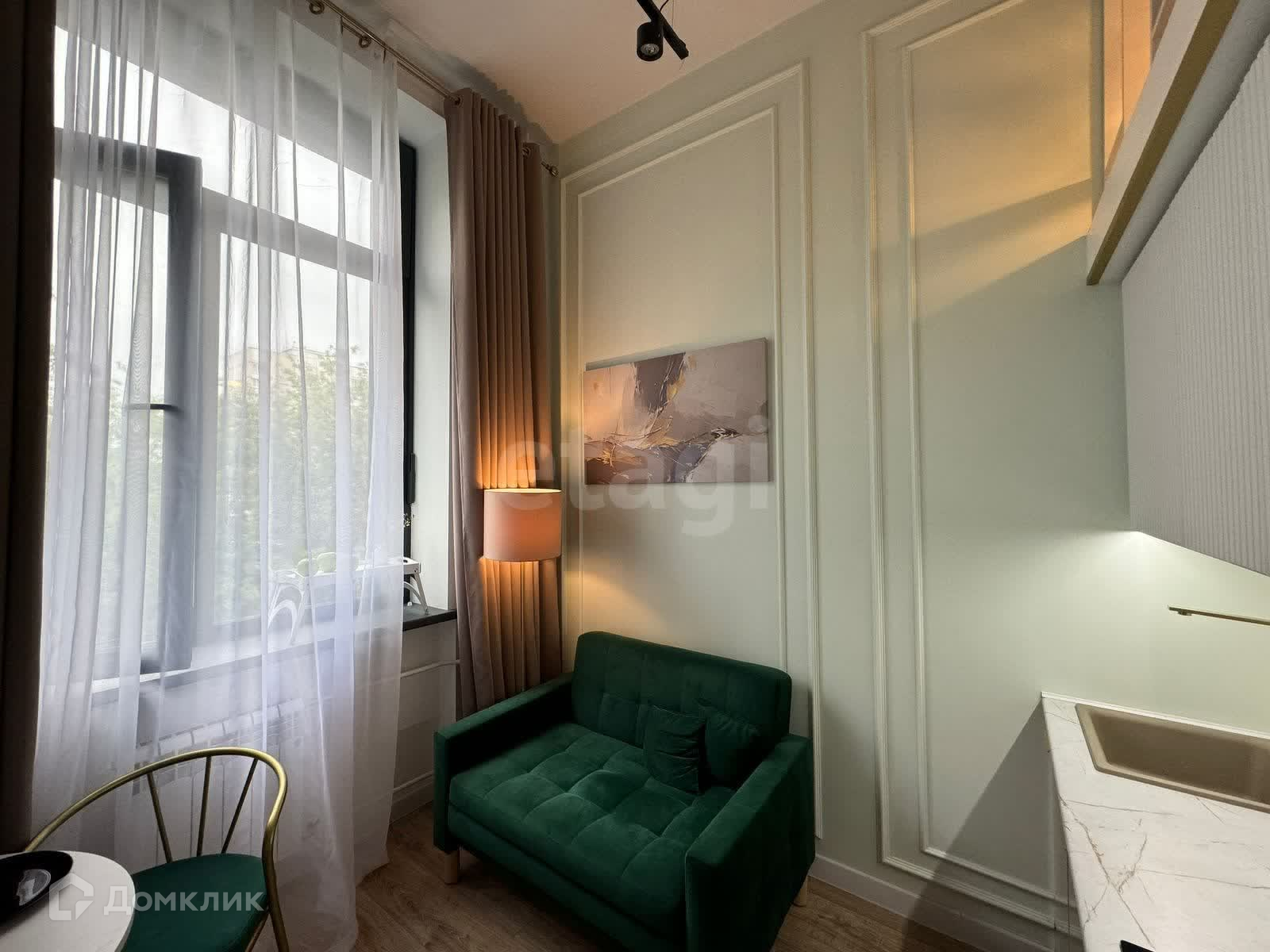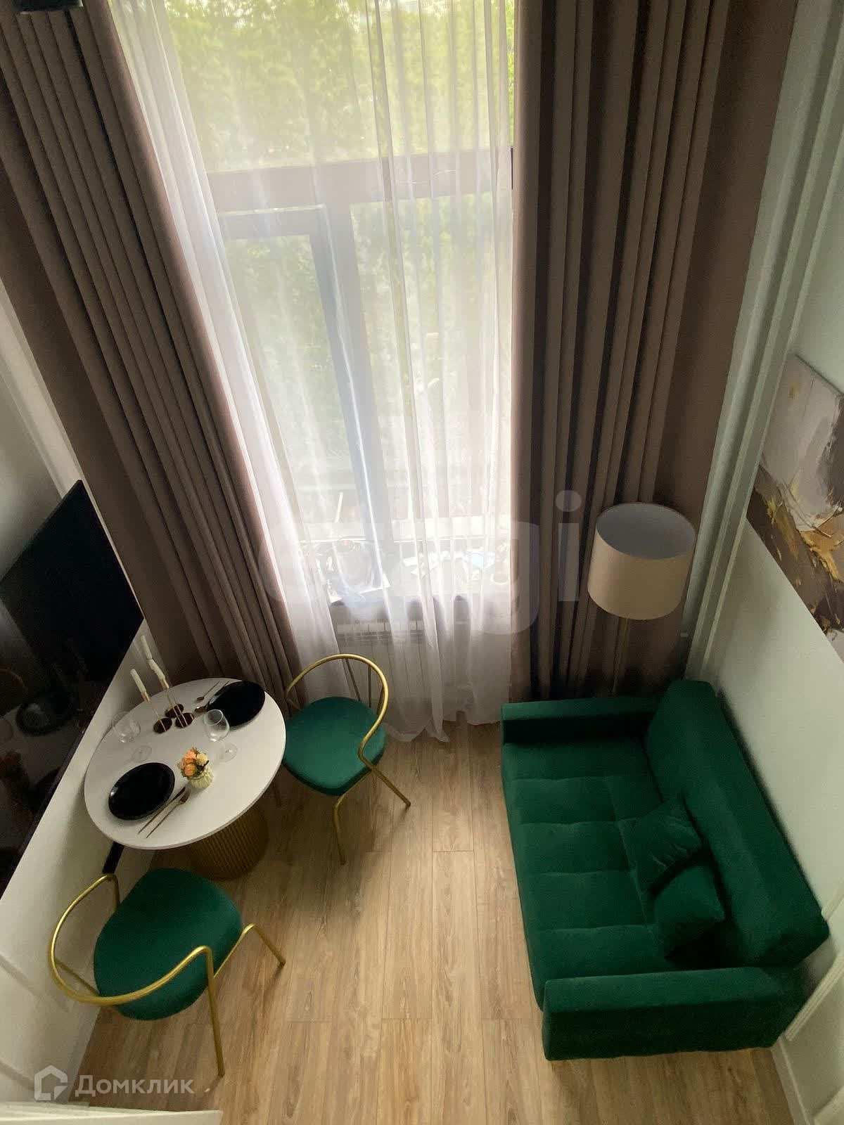 Студия продаётся со всей мебелью и техникой, а так же со всеми элементами декора.