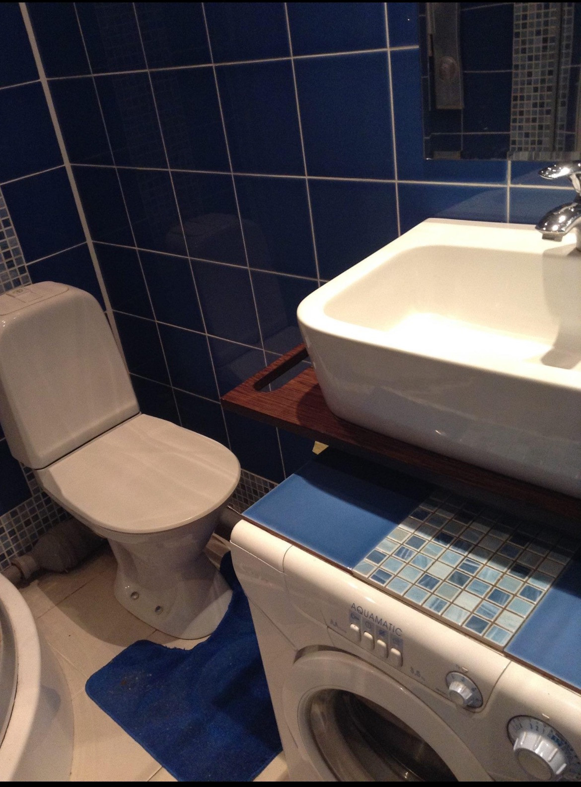 Вместо туалета сделан кухонный остров.