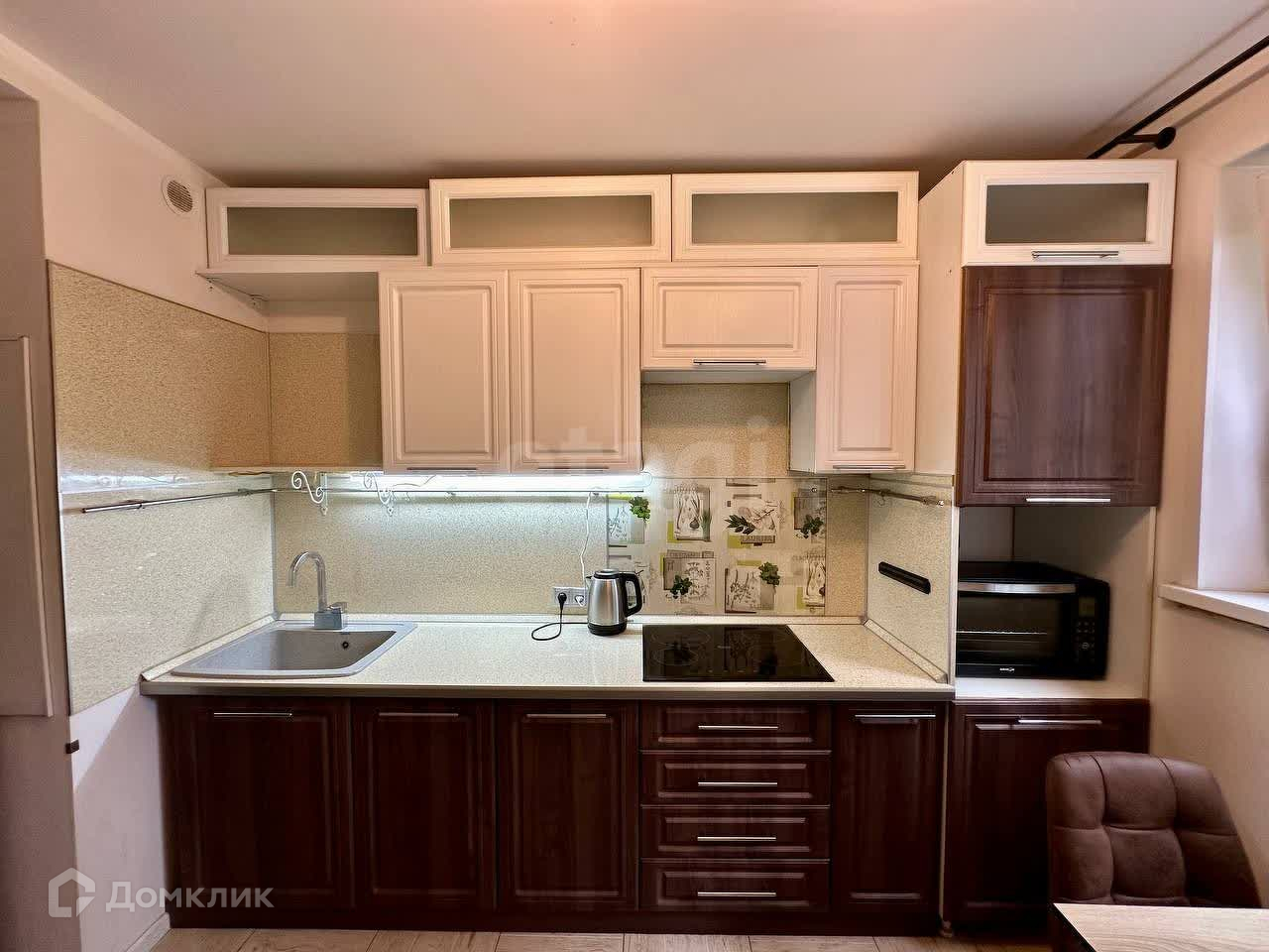 - Сделан ремонт во всех комнатах, поменяны батареи и все трубы, вся электропроводка, установлены пластиковые окна, стены выровнены. На кухне и в коридоре установлены электрические теплые полы.