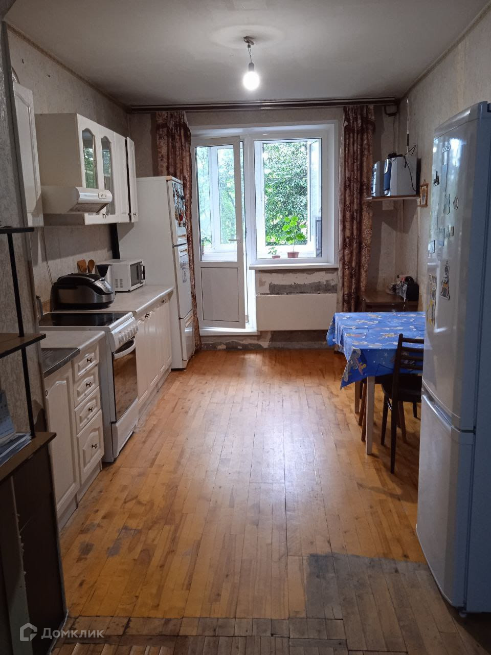 Квартира - распашонка с уникальной планировкой, есть персональный второй вход с улицы с тамбуром под коляски и велосипеды. Окна выходят на две стороны, во двор с детской площадкой и на улицу. Большая кухня - гостиная с выходом на лоджию и три комнаты с хорошим ремонтом. Два санузла, гостевой и совмещённый.