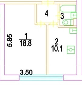 Жилая площадь 18.8 м2