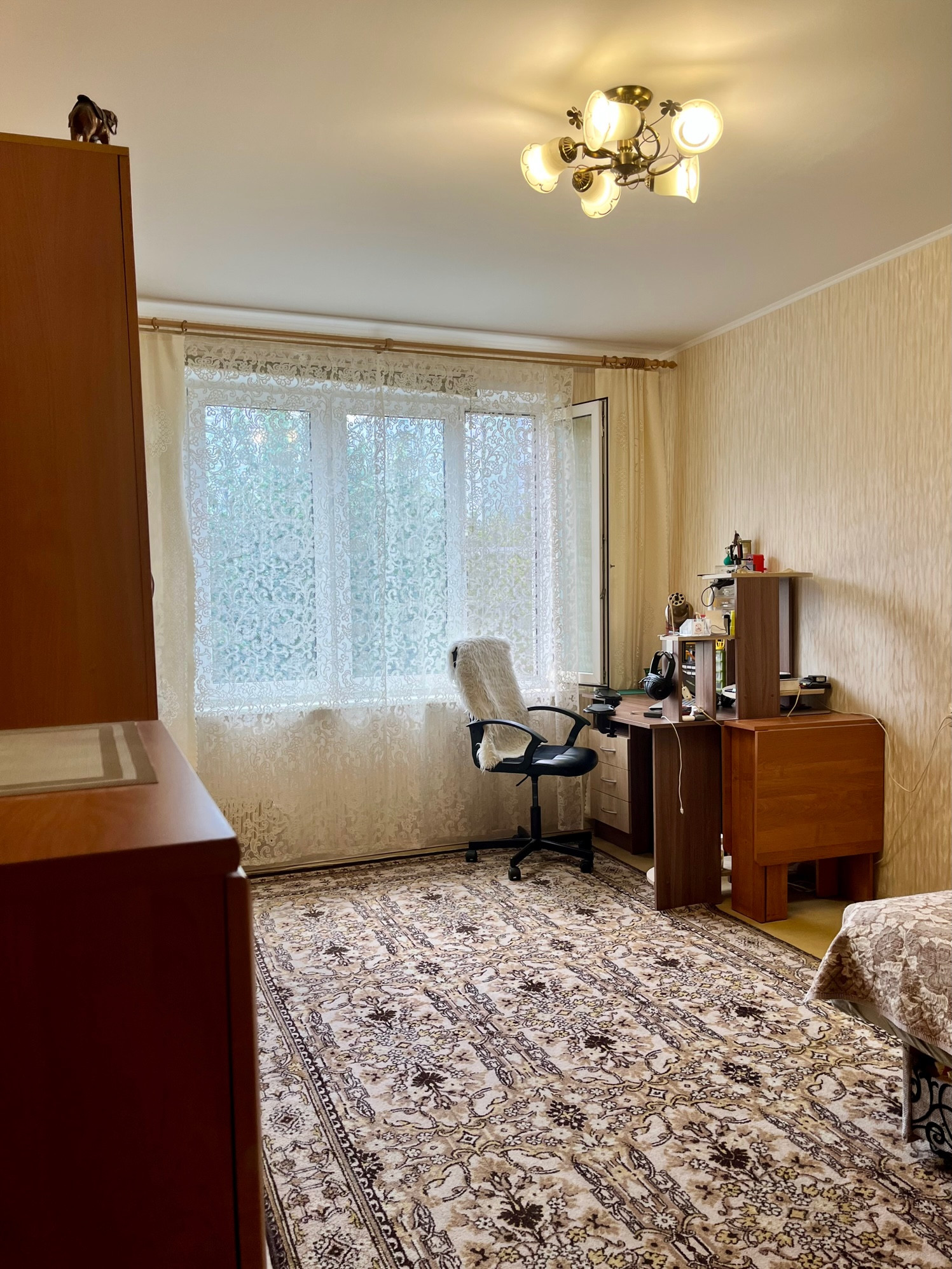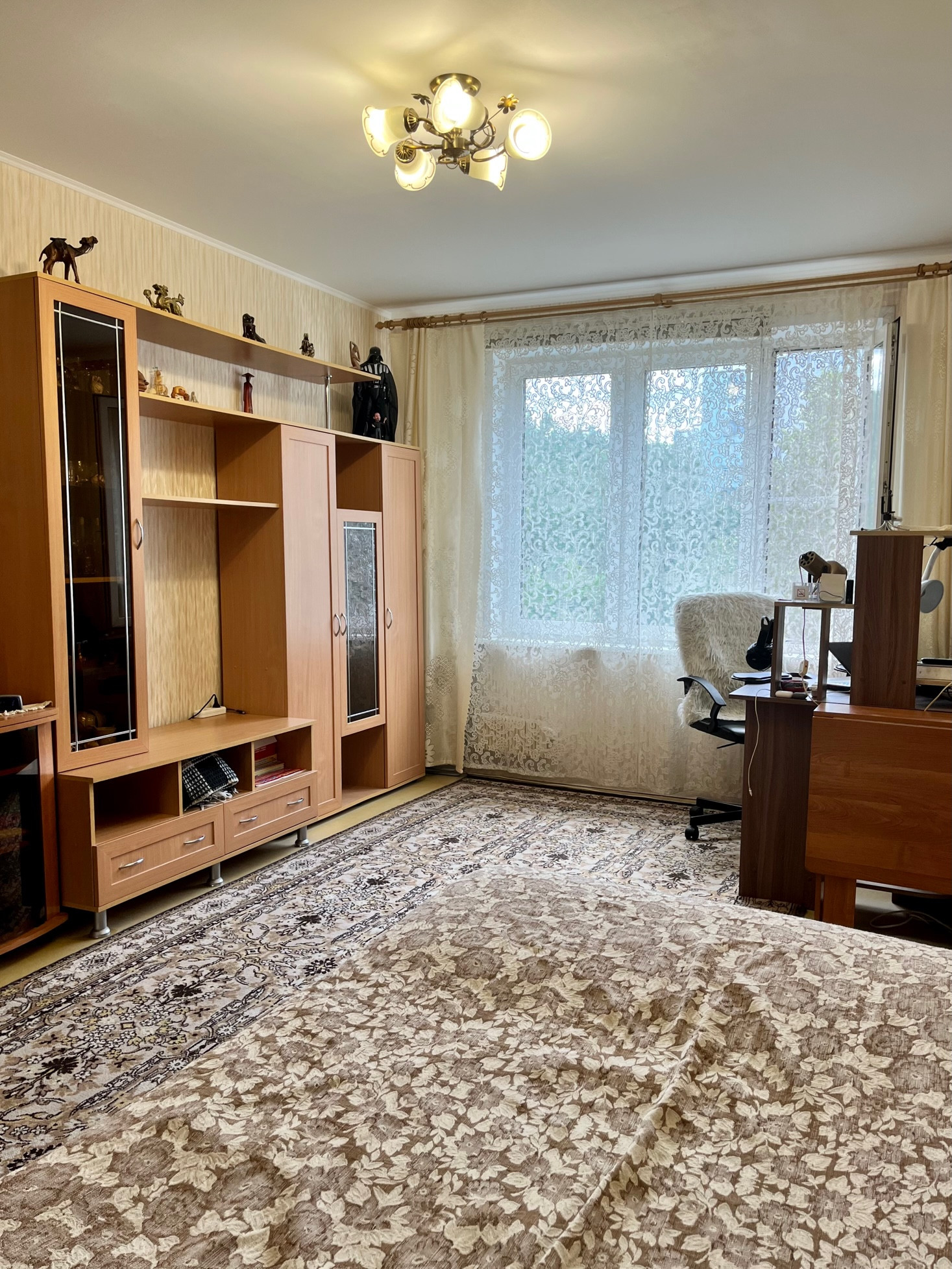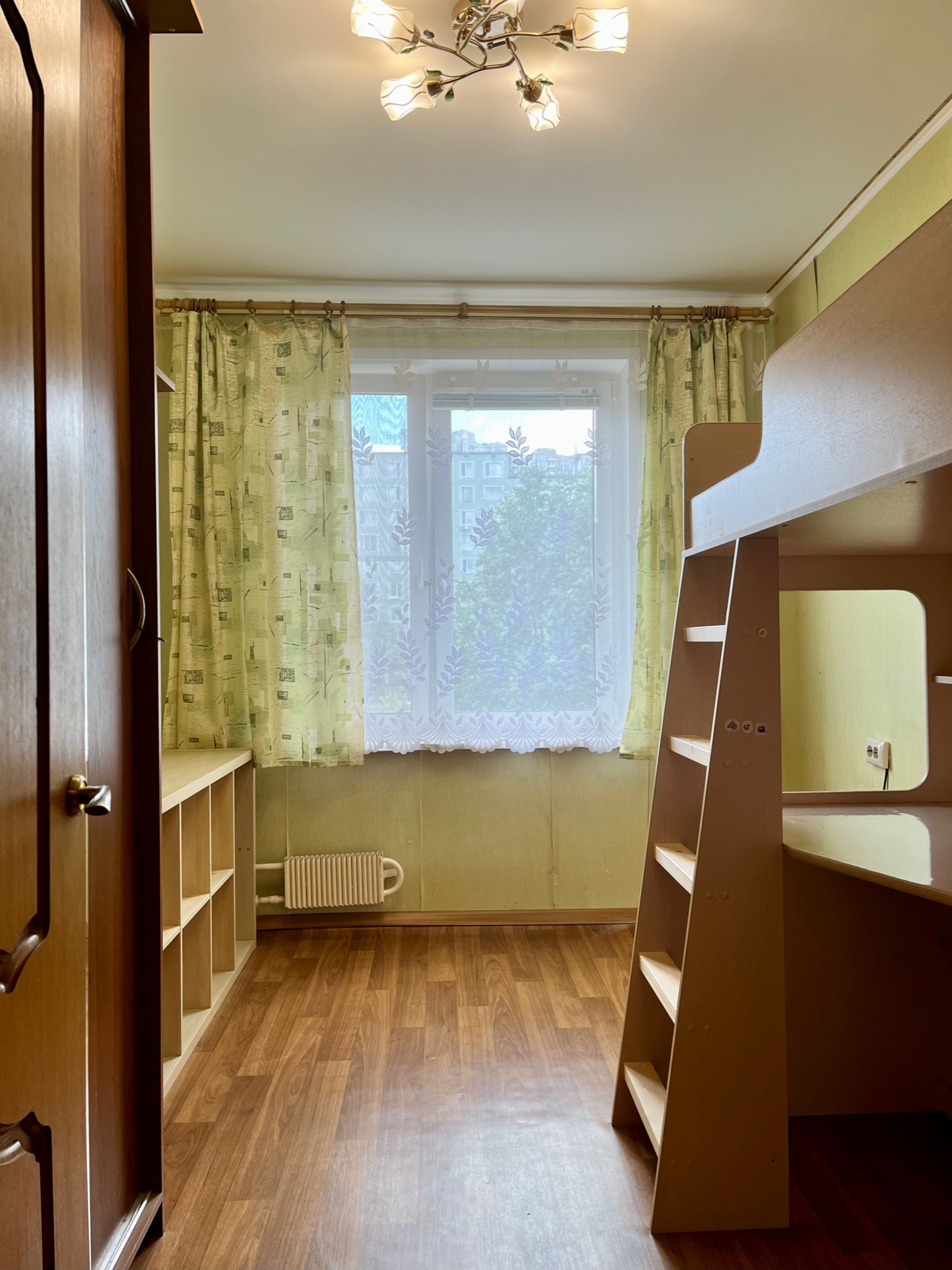 Вся мебель в квартире остаётся новым собственникам: кухонный гарнитур, плита, вытяжка, стиральная машина в великолепном состоянии (находится на гарантии), холодильник, все шкафы представленные на фото (хорошей вместимости, с полками глубиной до 65 см. и вешалами), диван, кровать-чердак, недавно купленная стенка-горка, комоды, люстры.