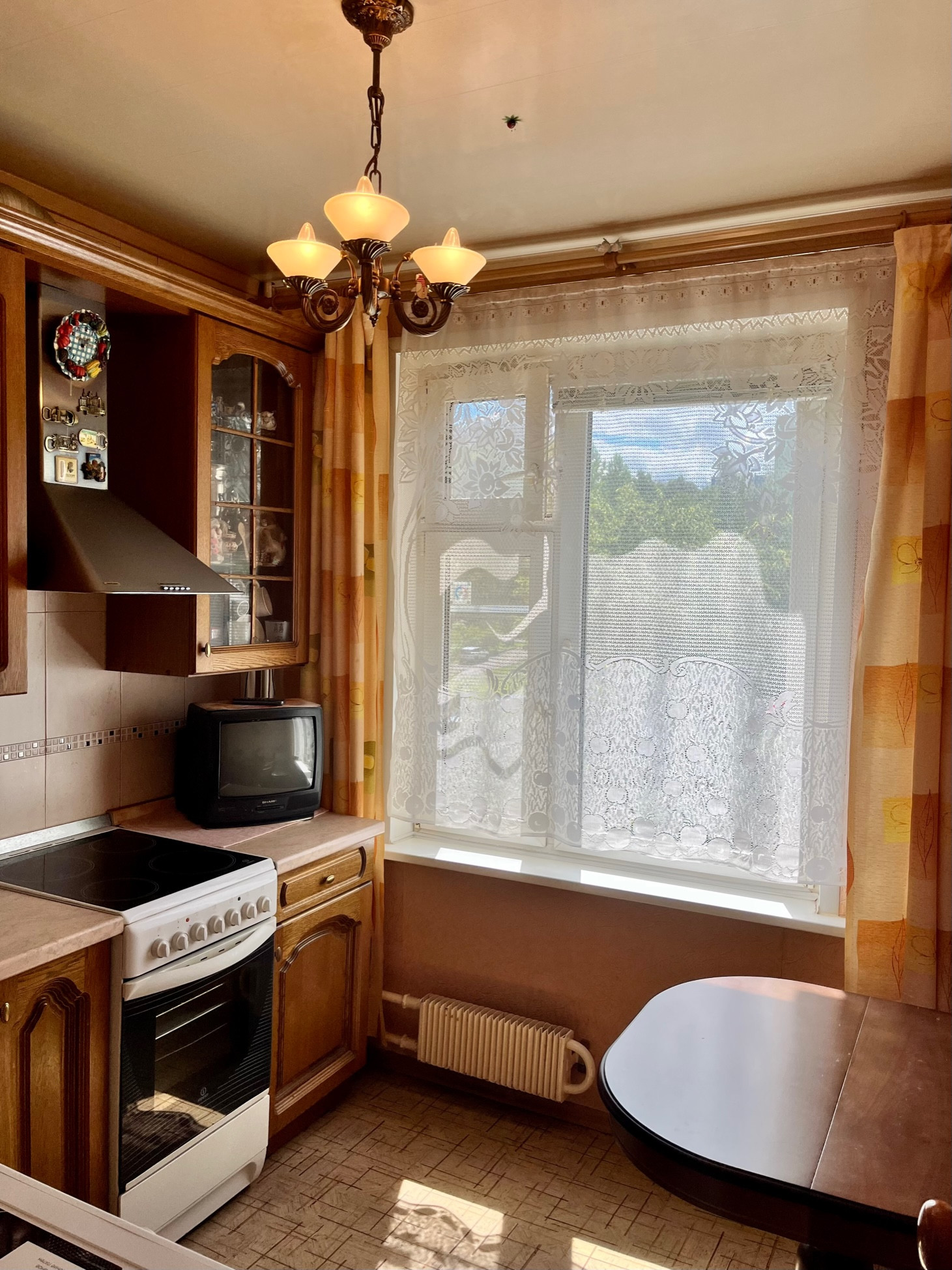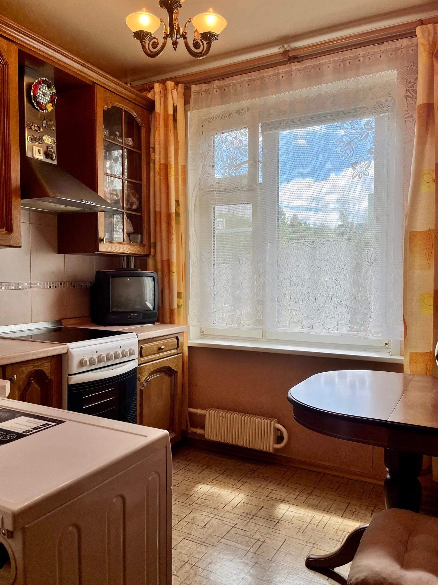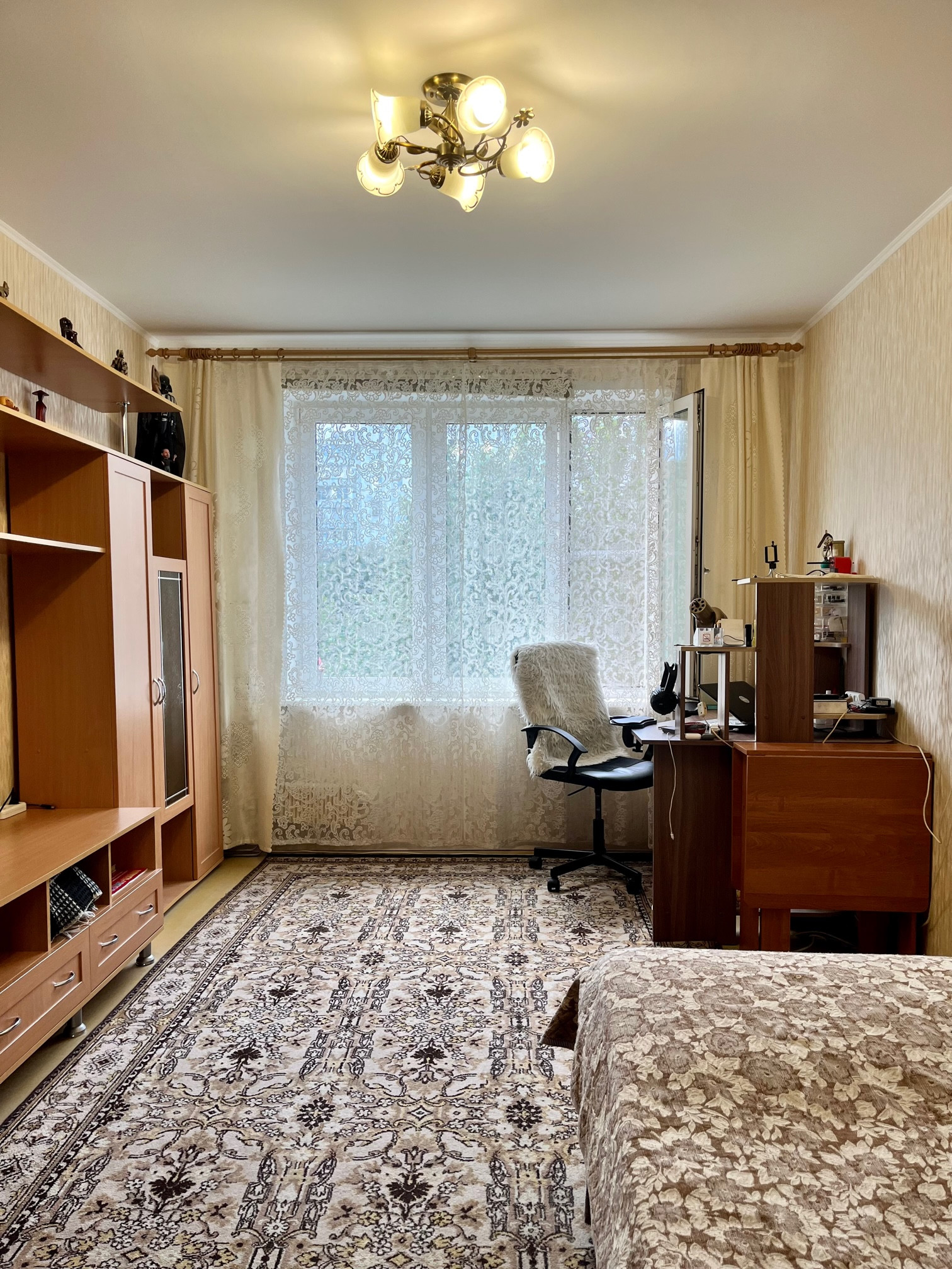 Вся мебель в квартире остаётся новым собственникам: кухонный гарнитур, плита, вытяжка, стиральная машина в великолепном состоянии (находится на гарантии), холодильник, все шкафы представленные на фото (хорошей вместимости, с полками глубиной до 65 см. и вешалами), диван, кровать-чердак, недавно купленная стенка-горка, комоды, люстры.