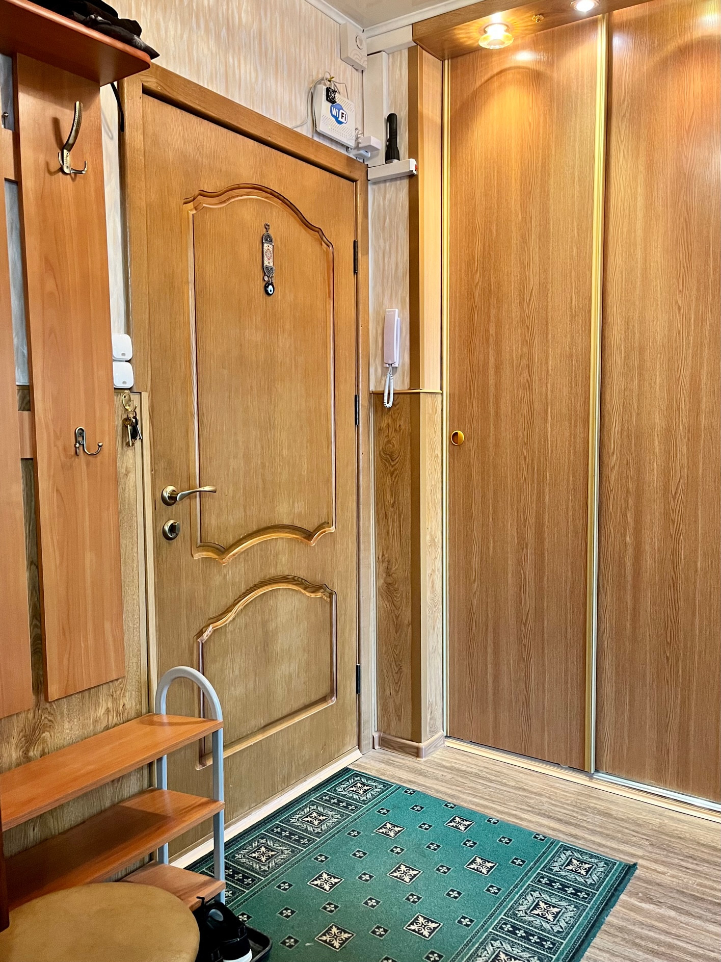 В квартире удачная планировка. Окна пластиковые (установлены в 2012г., тех.обслуживание произведено в 2019г.), во всех комнатах и на кухне оконные жалюзи. В комнатах выровнены стены. В большой комнате был сделан ремонт в 2018г. В квартире имеются счётчики воды и электричества. В 2019г. были заменены трубы водоотведения. В санузле и на кухне была произведена замена проводки на медную. На кухне и в ванной комнате установлены розетки для безопасного подключения стиральной машины с УЗО (устройством защиты отключения), что позволит установить стиральную машину на кухне, либо в ванной комнате по Вашему желанию. В квартире цельнометаллическая дверь с евро замками, проведён интернет, имеется аналоговая антенна с 20+ стабильными каналами, домофон.