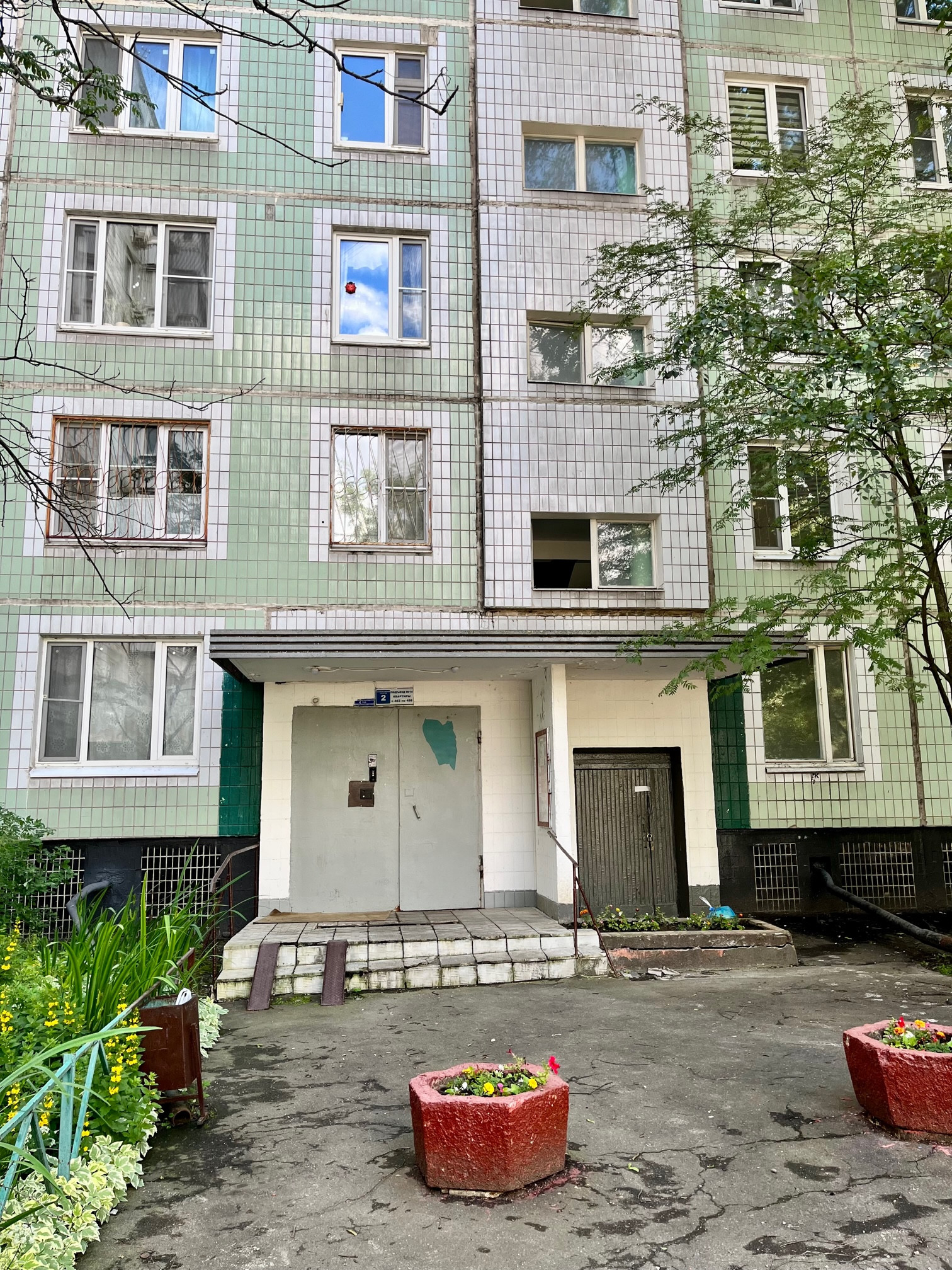 * Перед подъездом роща с прудом, асфальтированными дорожками, фонарями, скамейками, мостиками.